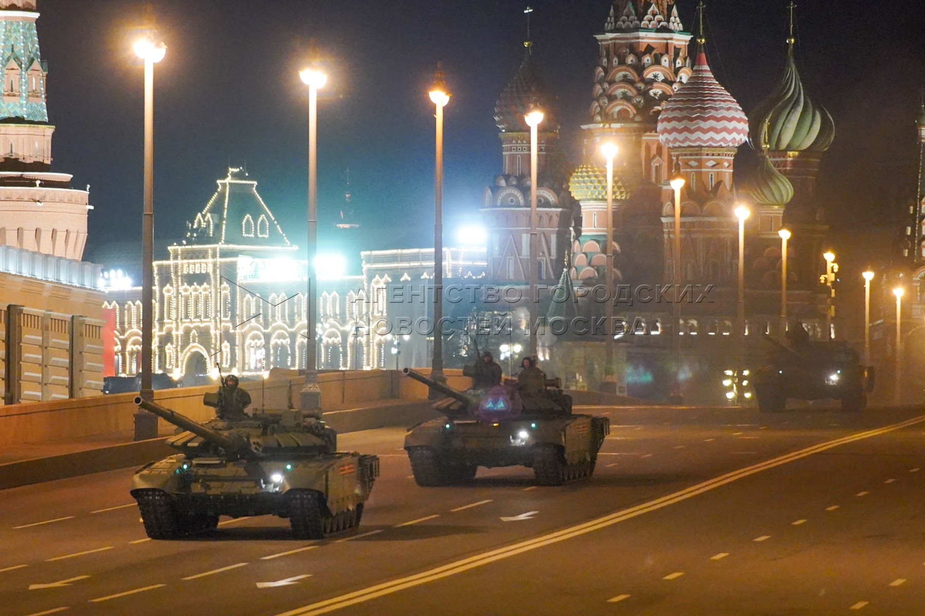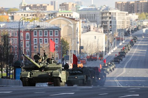 • Заголовок: Прохождение колонны военной техники перед ночной репетицией парада Победы в Москве