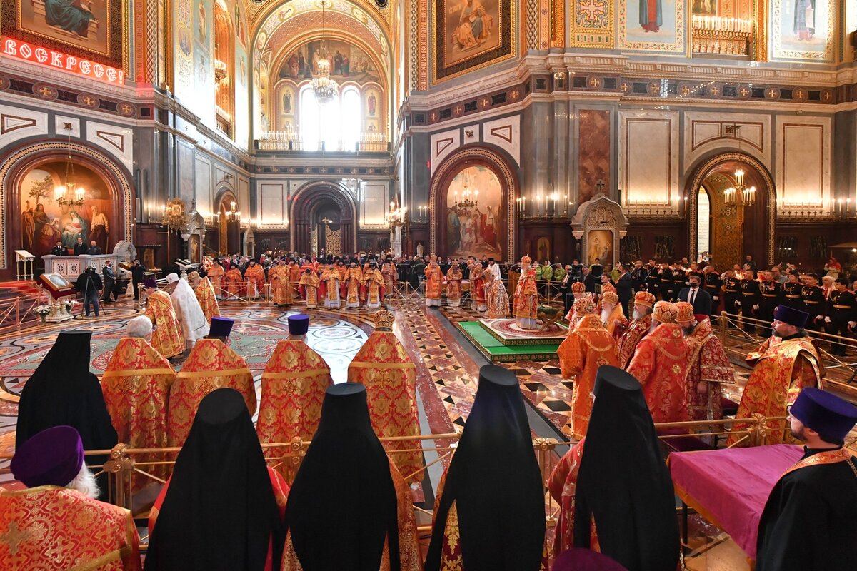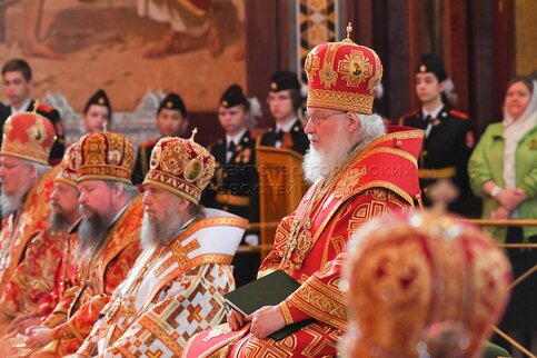 Божественная литургия в храме Христа Спасителя с участием патриарха Московского и...