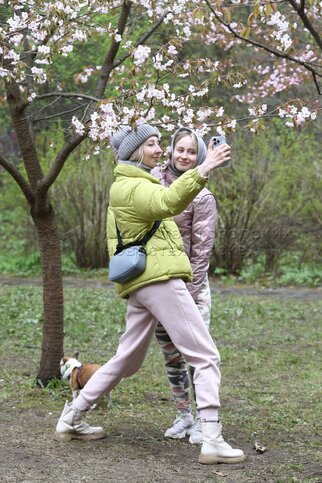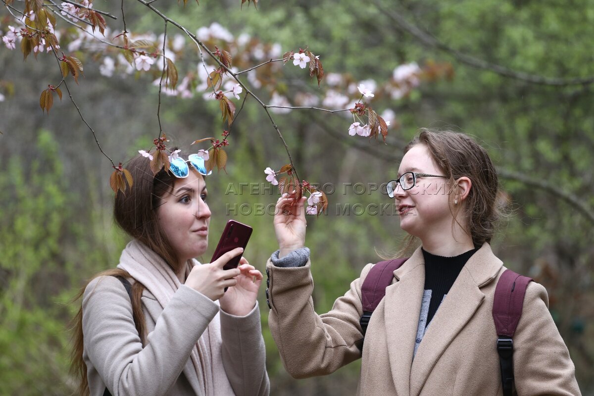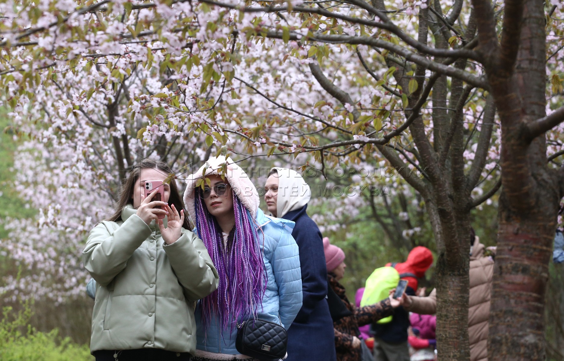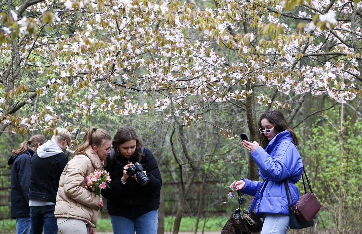 Цветение сакуры в Бирюлевском дендропарке Москвы.
