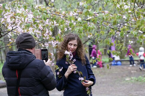 • Описание: Цветение сакуры в Бирюлевском дендропарке Москвы.