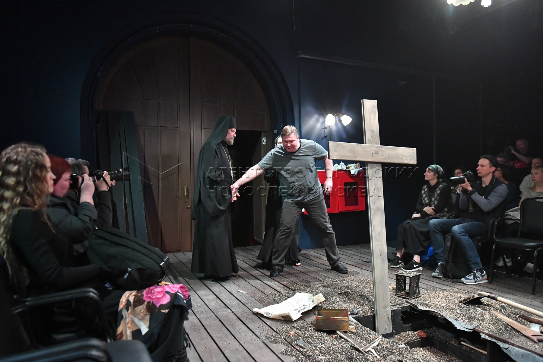 Актер Александр Галибин в роли Агафангела во время показа спектакля «Ангелы вышли...