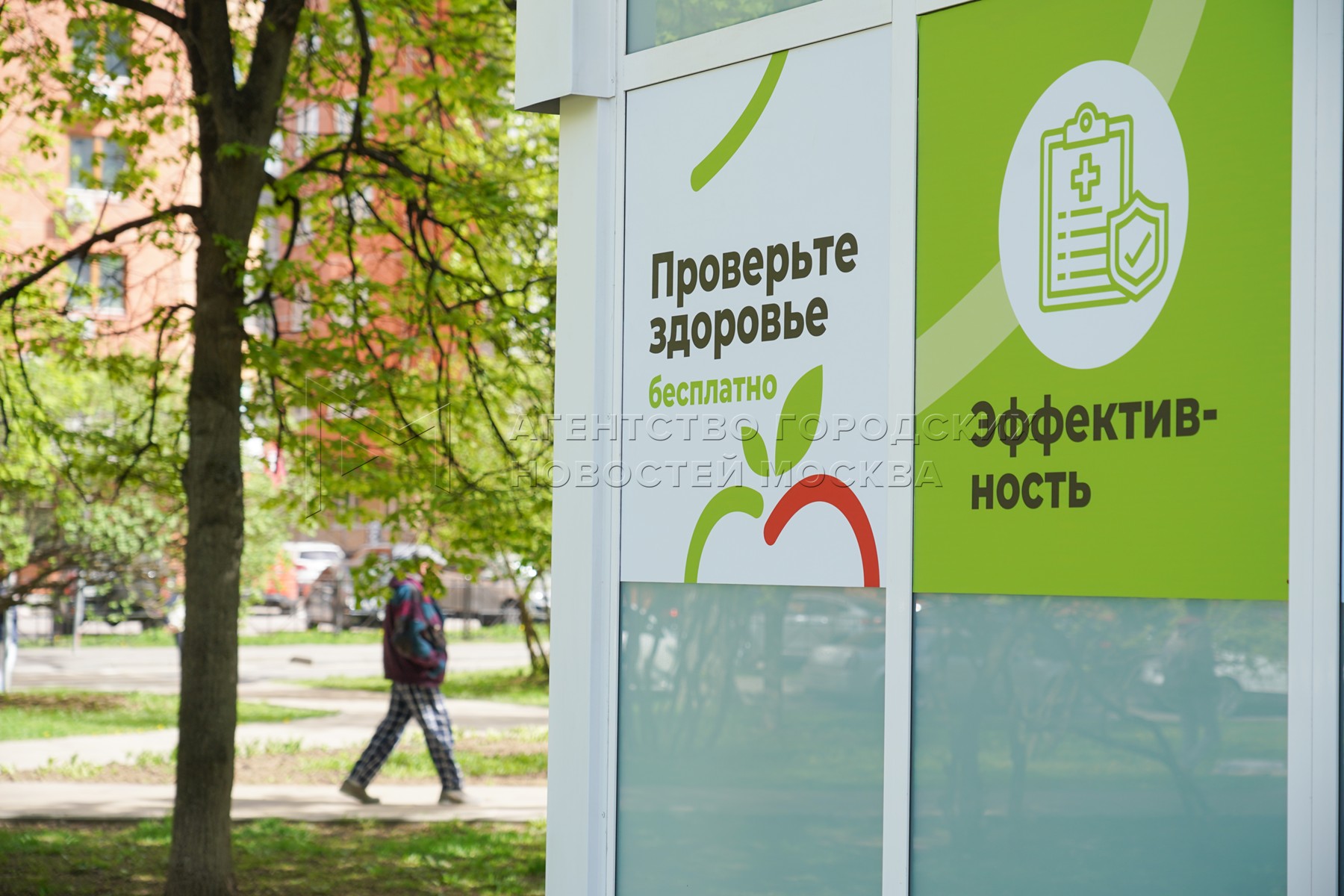 Работа павильона «Здоровая Москва» в сквере на бульваре Генерала Карбышева на зап...