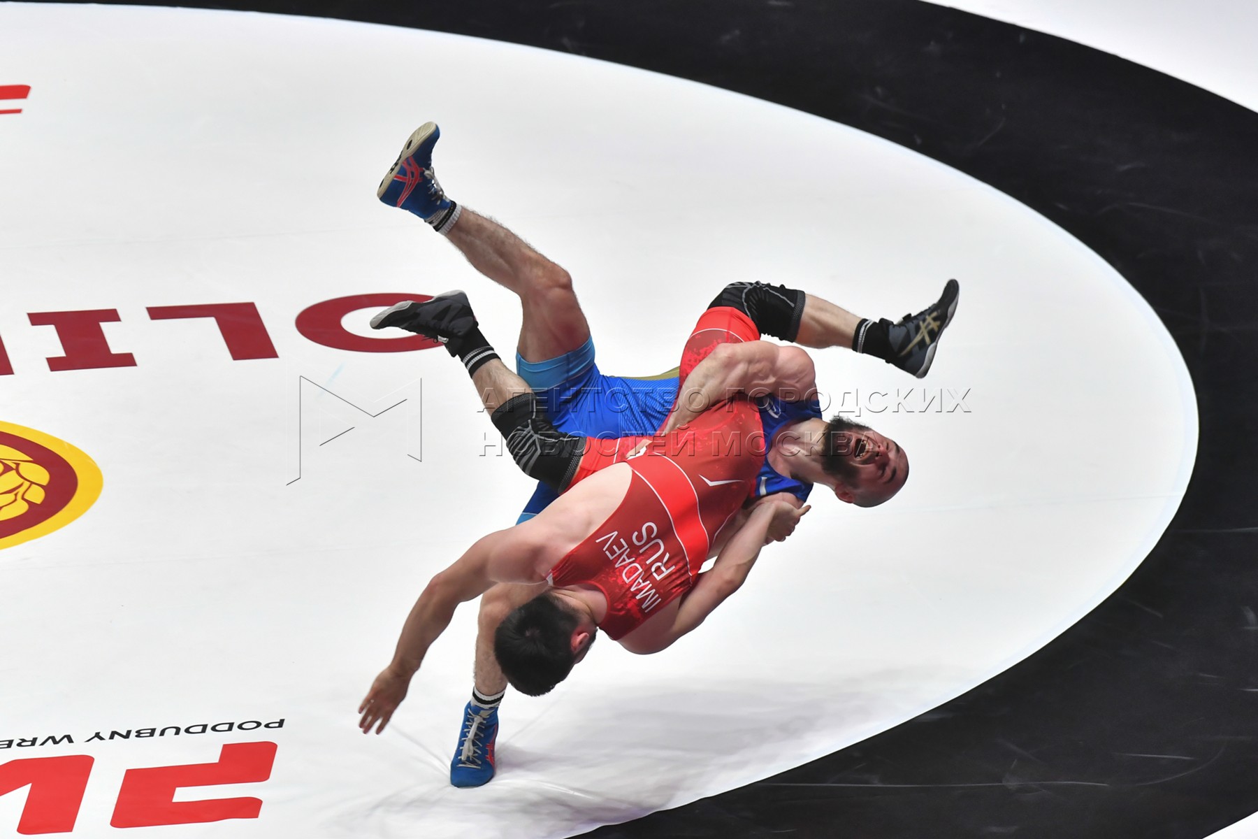 Финальные соревнования по панкратиону на первом профессиональном международном турнире Борцовской лиги Поддубного в Москве.