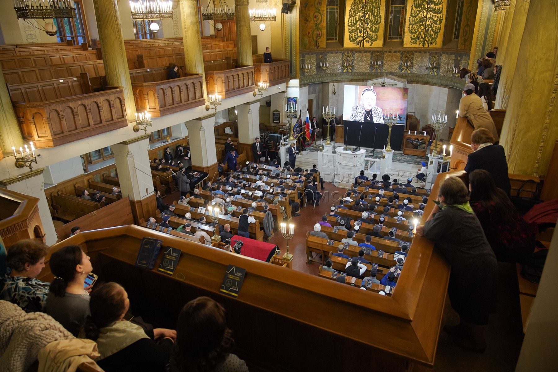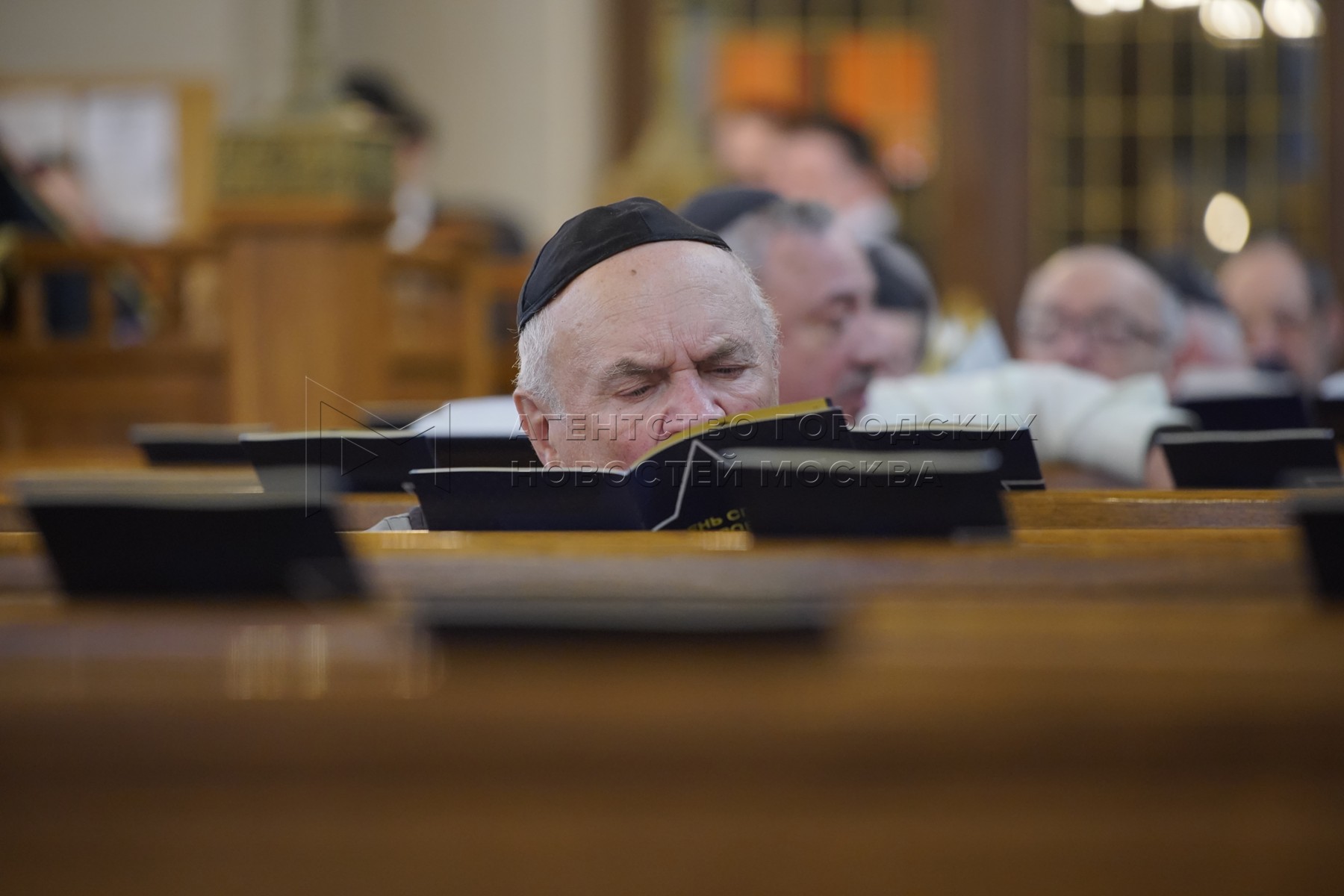 Чтение молитв в Московской хоральной синагоге в День спасения и освобождения.