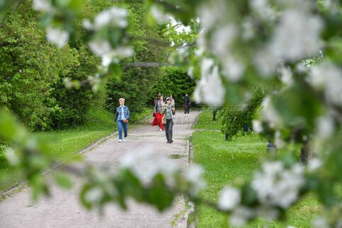 Цветение яблонь и сирени на территории Московского государственного объединенного музея-заповедника «Коломенское».