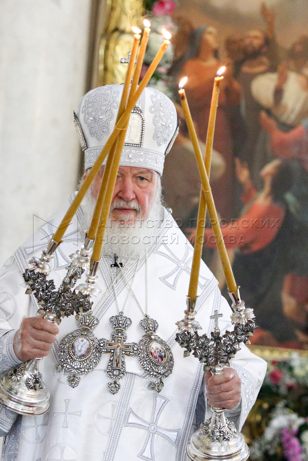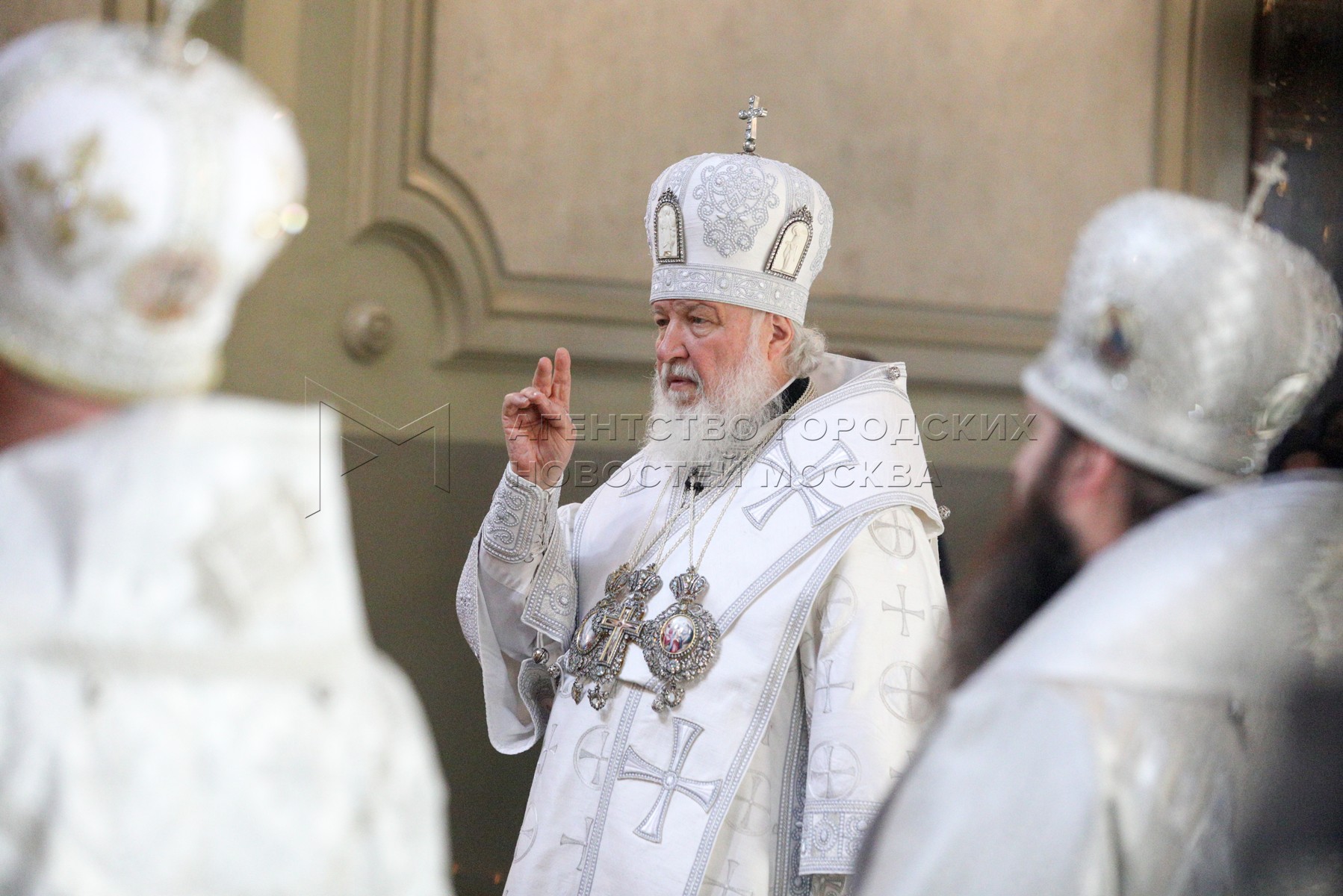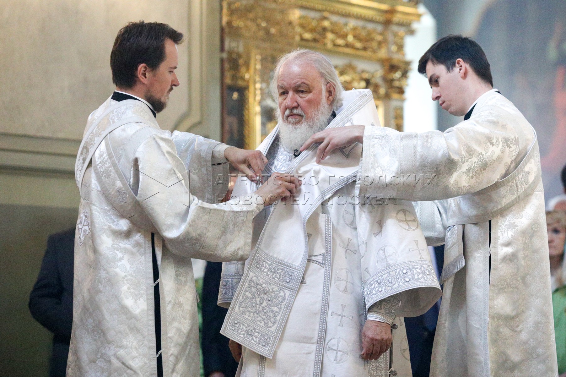 • Описание: Патриарх Московский и всея Руси Кирилл во время Божественной литургии в храме «Большое Вознесение» у Никитских ворот в праздник Вознесение Господне.