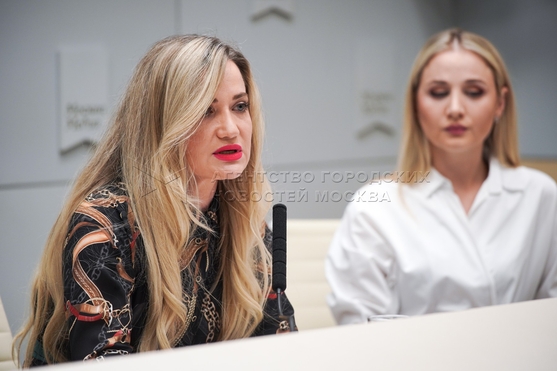 Начальник отдела правового обеспечения Росреестра по Москве Оксана Сухова (слева) во время пресс-конференции на тему «Права несовершеннолетних граждан в сфере недвижимости».