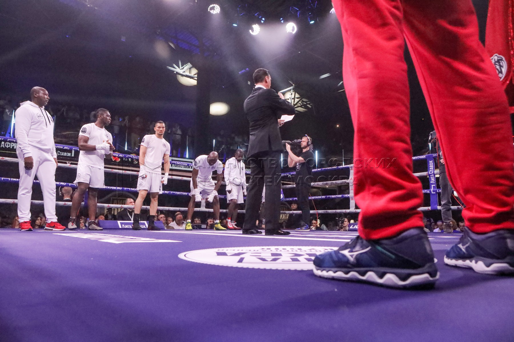 • Описание: Боксеры сборной команды Африки перед началом поединков на третьем турнире по профессиональному боксу «Лига бокса. Интерконтинентальный кубок» на территории многофункционального event-пространства «Атмосфера».