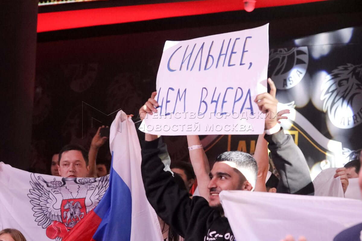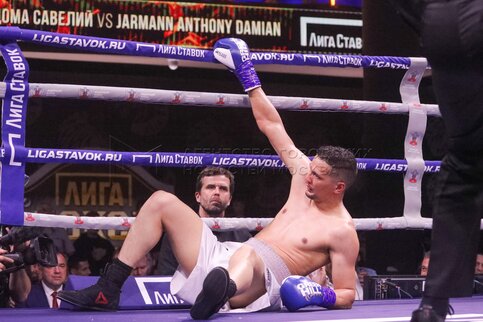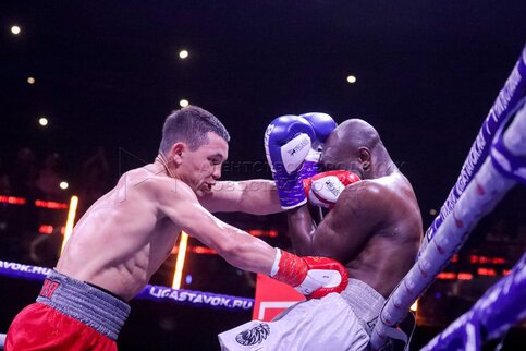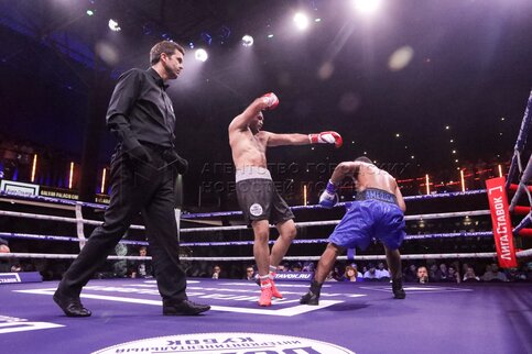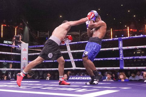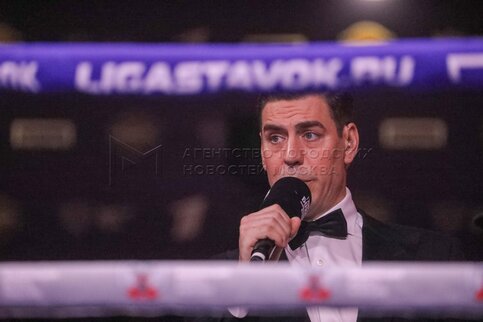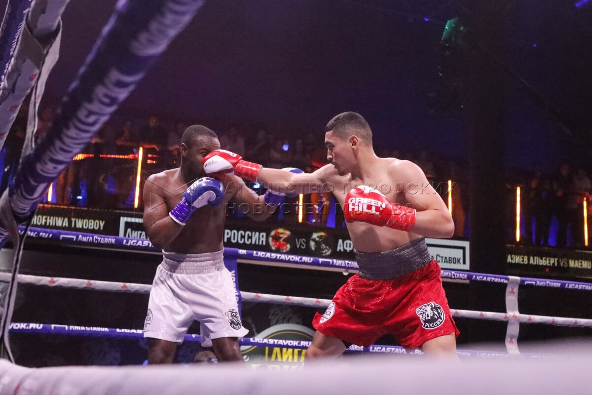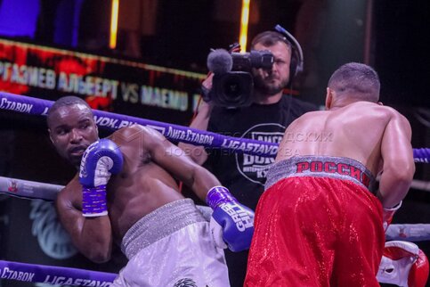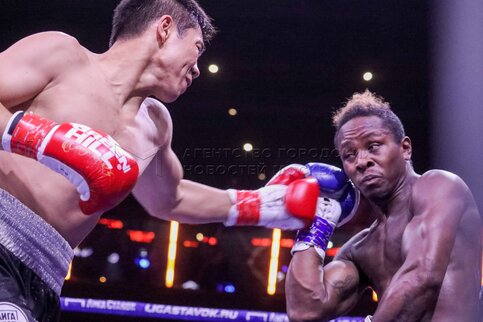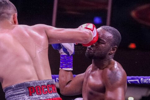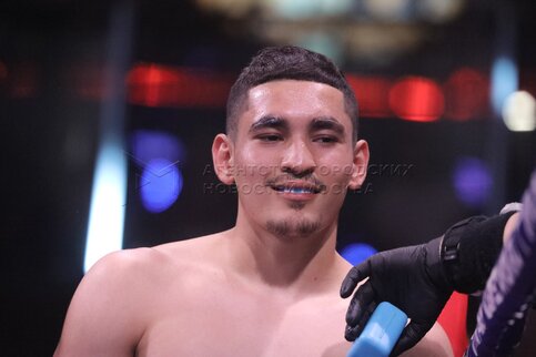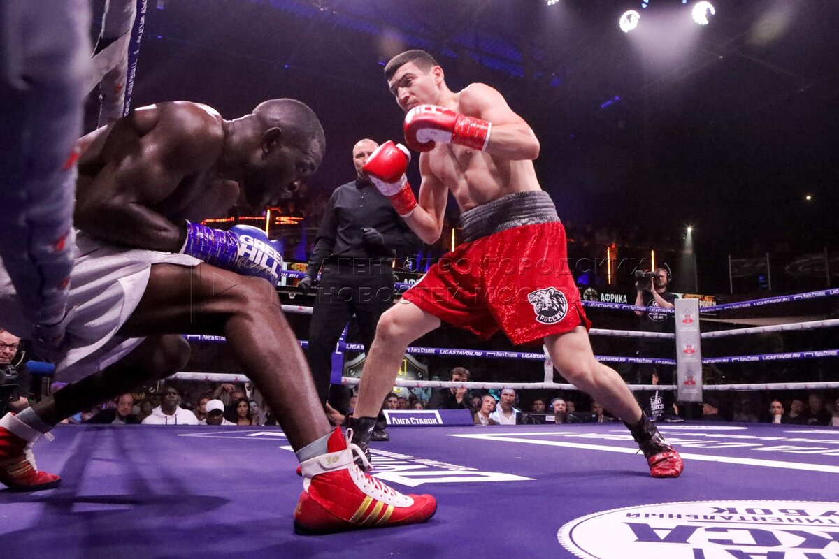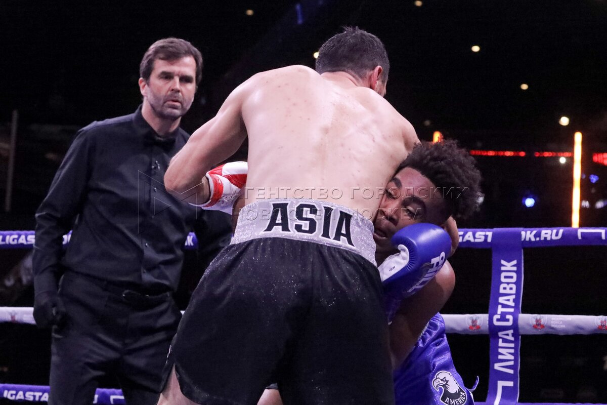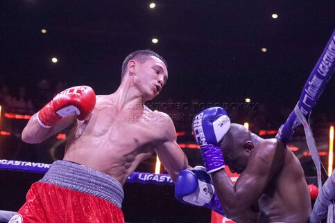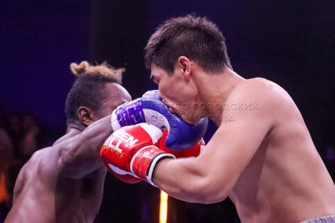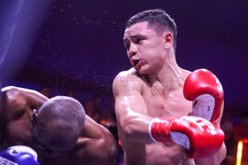 - Описание: Боксер сборной команды Азии (Узбекистан) Мадияр Сайдрахимов во время поединка на третьем турнире по профессиональному боксу «Лига бокса. Интерконтинентальный кубок» на территории многофункционального event-пространства «Атмосфера».