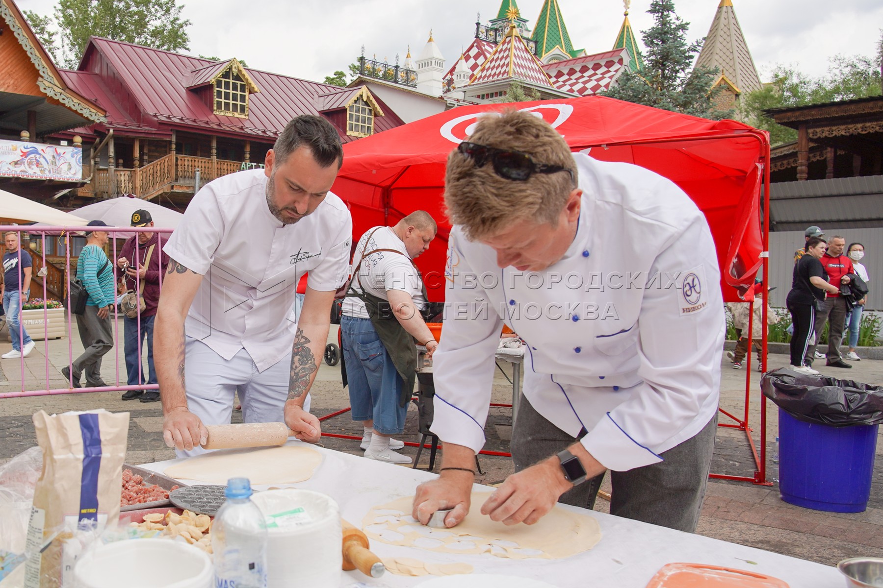 - Описание: Шеф-повар Дмитрий Табаков (слева) во время конкурса на самый вкусный пельмень в рамках фестиваля «Русская кухня 2022» в культурно-развлекательном комплексе «Кремль в Измайлово».