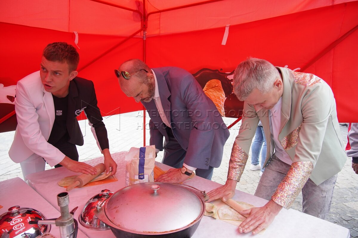 Шеф-повар Дмитрий Табаков (справа) во время конкурса на самый вкусный пельмень в ...
