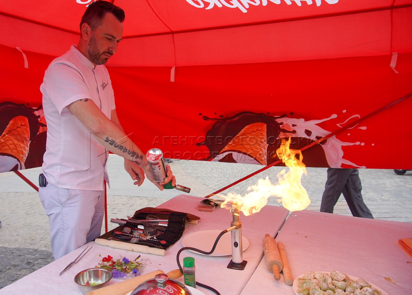 Шеф-повар Алексей Кузнецов во время конкурса на самый вкусный пельмень в рамках ф...