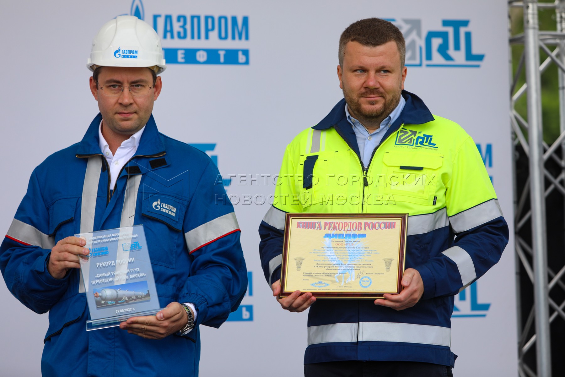 • Описание: Доставка водным путем крупногабаритного оборудования для модернизации Московского нефтеперерабатывающего завода. Факт перевозки по Москве-реке самого тяжелого груза зафиксирован в книге рекордов России.