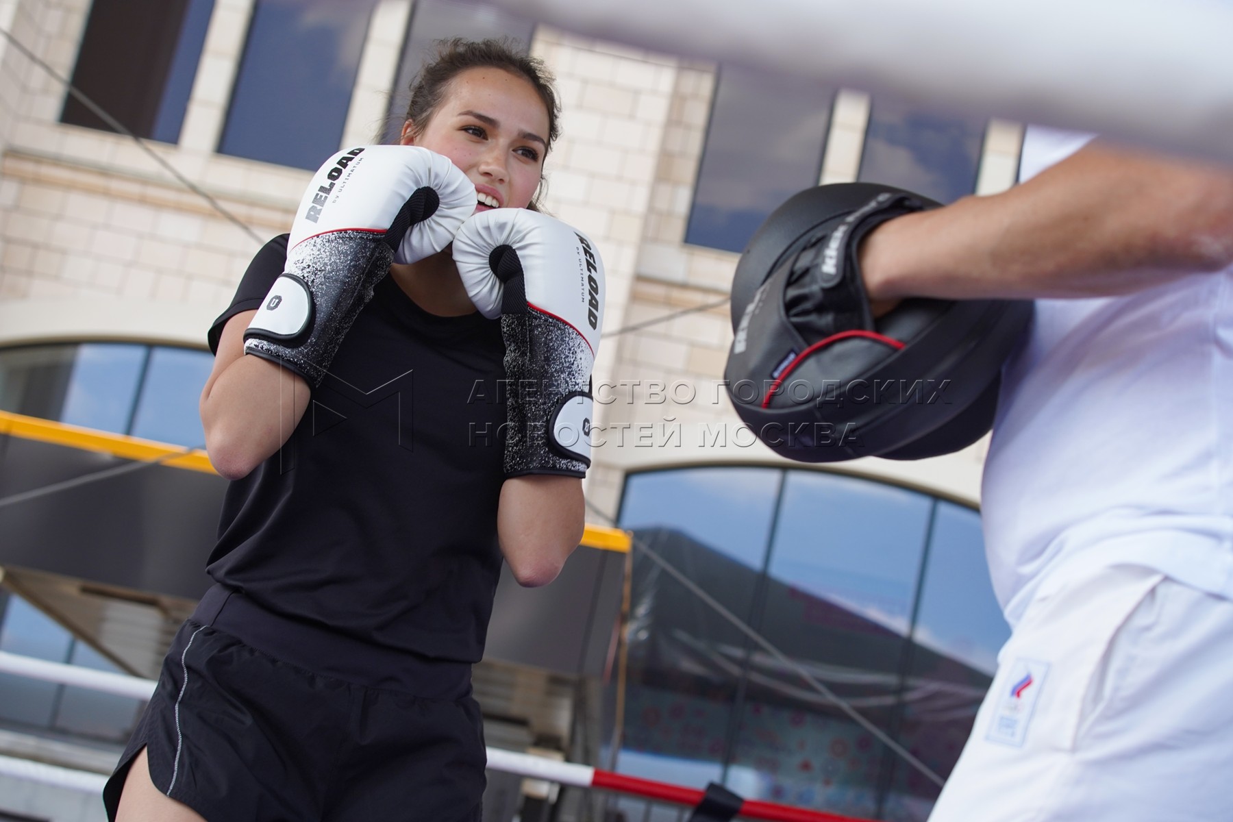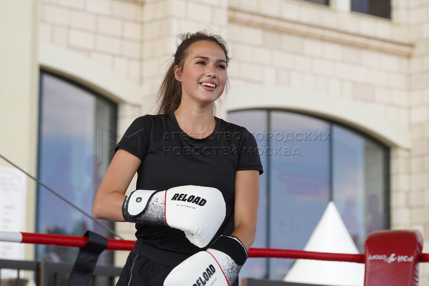 Фигуристка Алина Загитова во время мастер-класса по боксу на Дне московского спор...