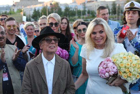 Певец Филипп Киркоров (слева) и модельер Валентин Юдашкин во время показа коллекц...