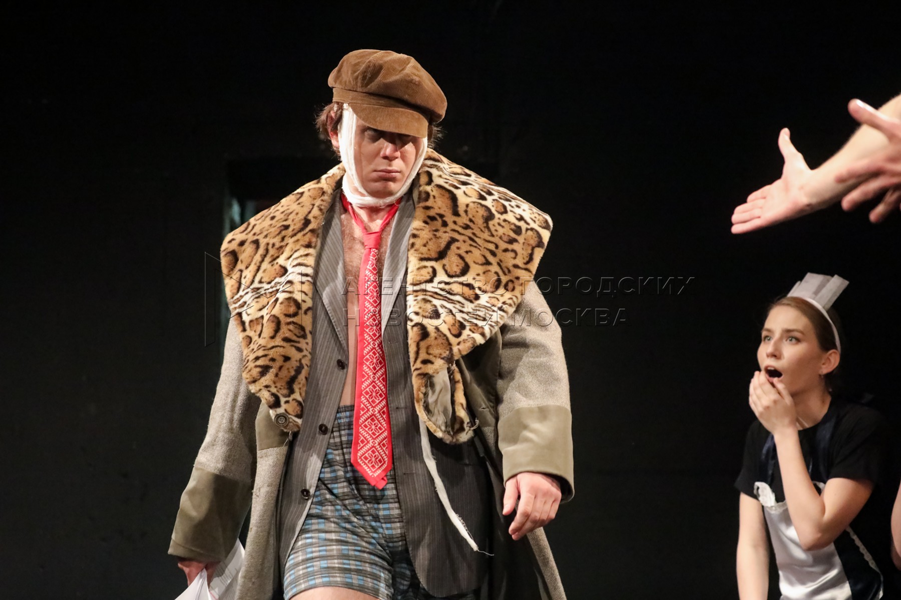 - Описание: Актриса Ольга Козырева в роли Пряхиной и народный артист РФ, актер Владимир Стеклов в роли профессора Преображенского во время премьеры спектакля «Собачье сердце. Чудовищная история» в музее-театре «Булгаковский дом».