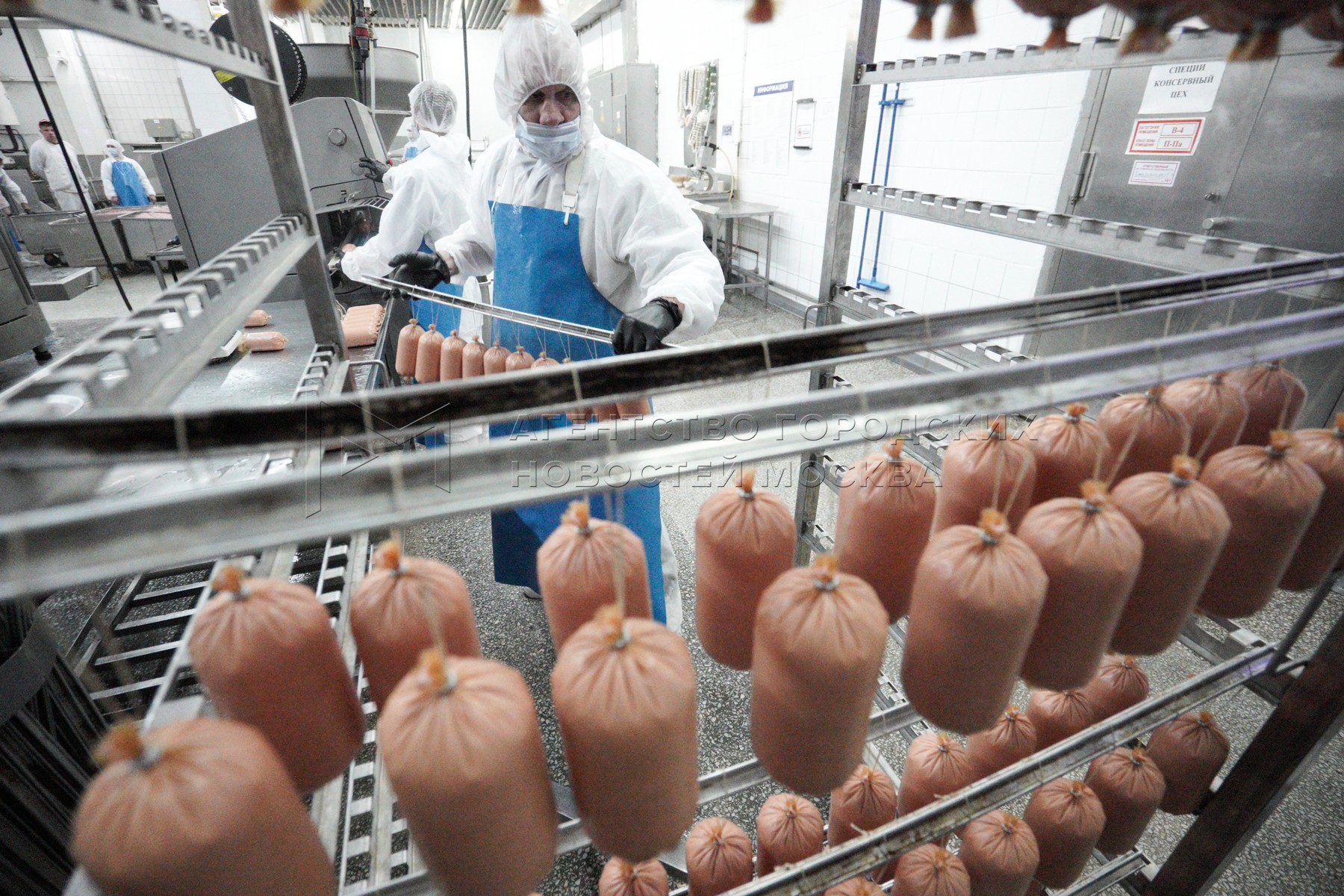 Работа производственных цехов на мясоперерабатывающем заводе «Рузком» в Московско...