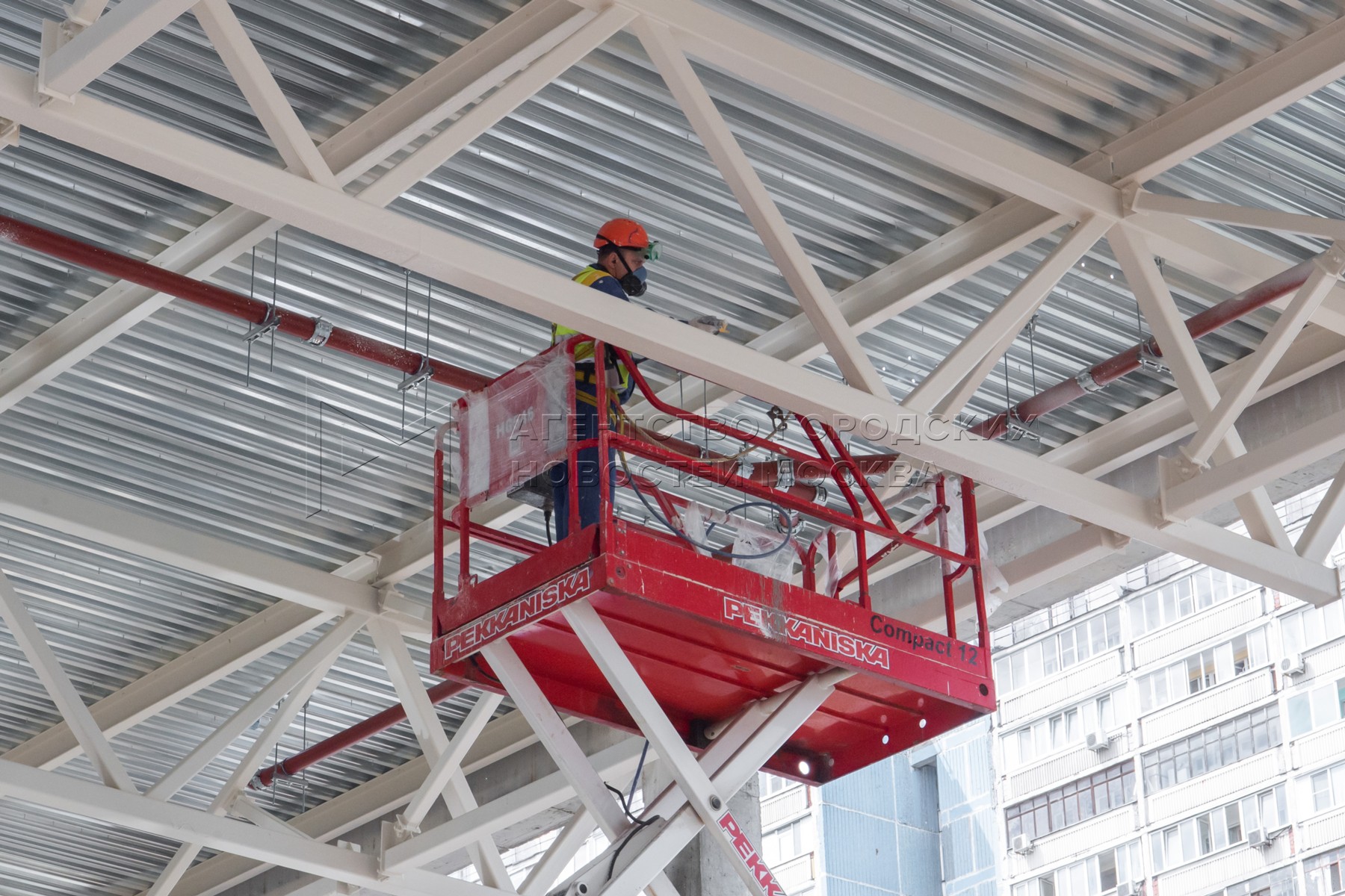 Мэр Москвы Сергей Собянин осмотрел ход строительства ледового дворца в столичном ...