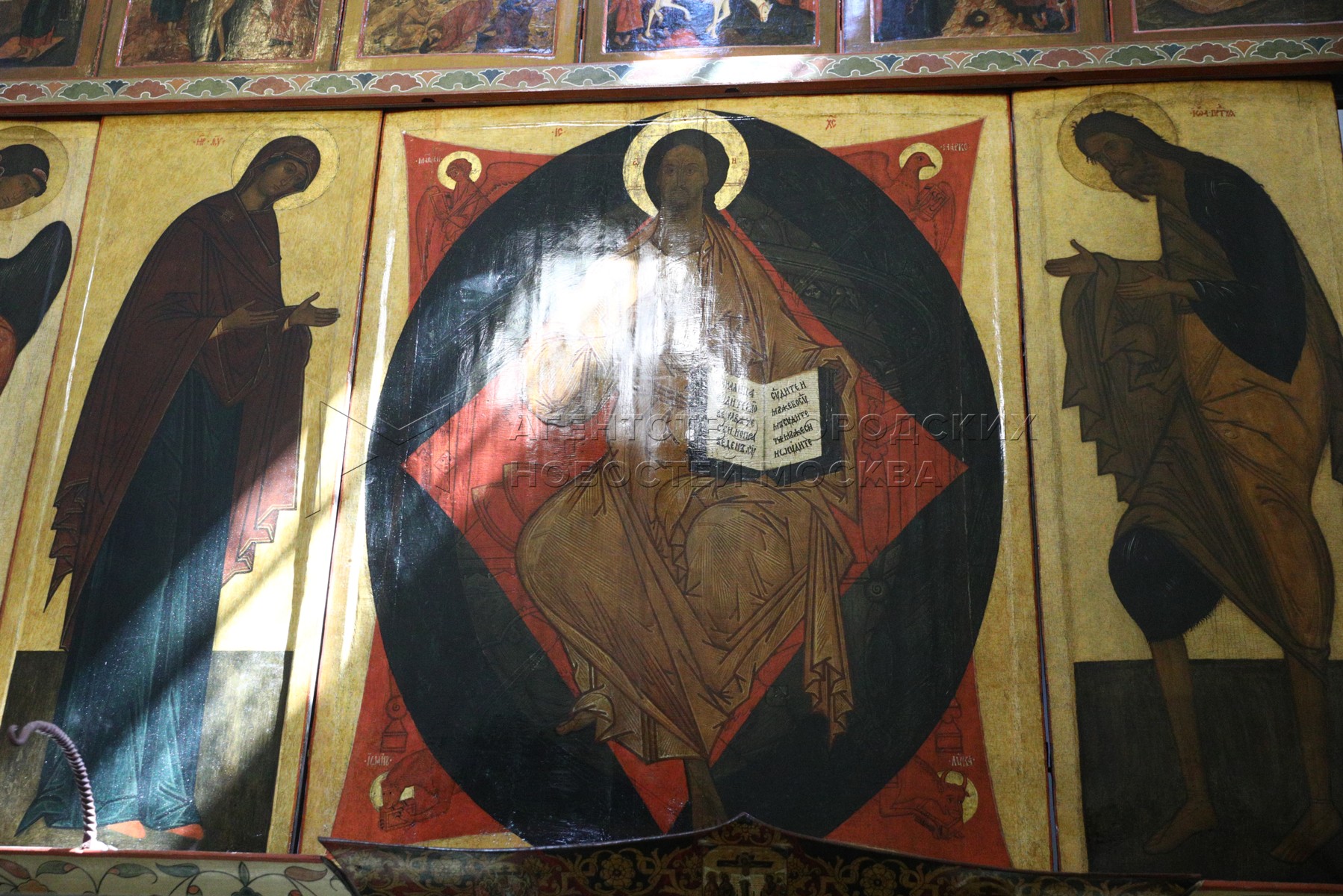 Монтаж иконостаса в церкви преподобного Варлаама Хутынского в храме Василия Блаженного.