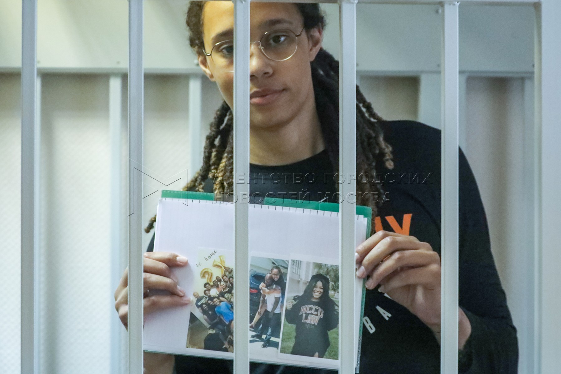 • Описание: Американская олимпийская чемпионка по баскетболу Бриттни Грайнер, обвиняемая в РФ в контрабанде наркотиков, во время заседания в Химкинском городском суде.