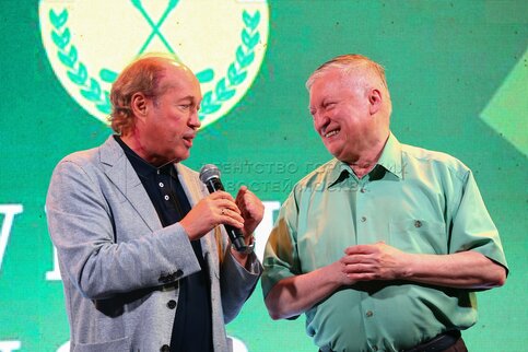 Российский гимнаст, олимпийский чемпион 2020 года, трехкратный чемпион мира, пятикратный чемпион Европы Артур Далалоян (справа) на открытом чемпионате Московской области по гольфу.