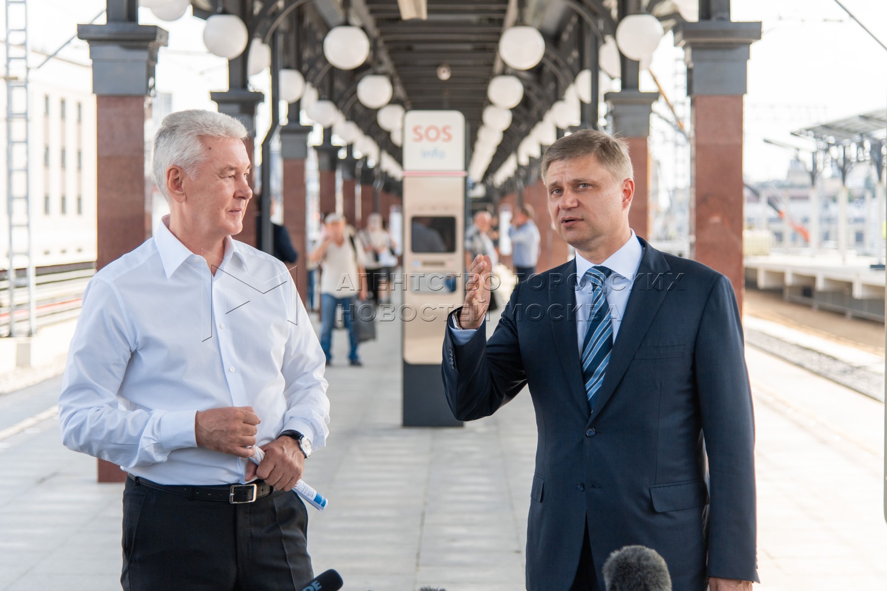 • Заголовок: Сергей Собянин во время запуска движения поездов на центральном участке МЦД-2 «Площадь трех вокзалов»