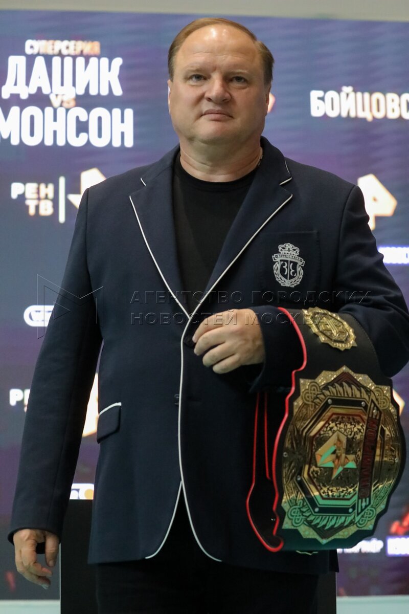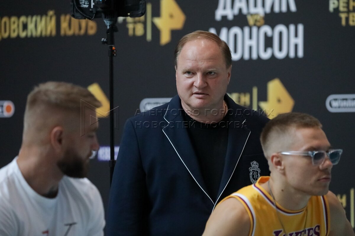 - Описание: Спортивный менеджер, промоутер Владимир Хрюнов во время открытой процедуры взвешивания бойцов в преддверии турнира «Бойцовский клуб. Суперсерия. Дацик vs Монсон».