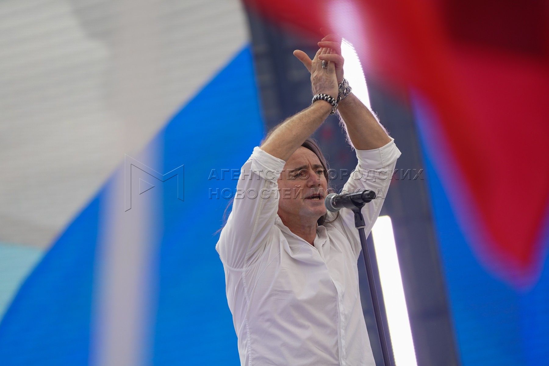 Певец, музыкант Александр Маршал на концерте во время празднования Дня флага Росс...
