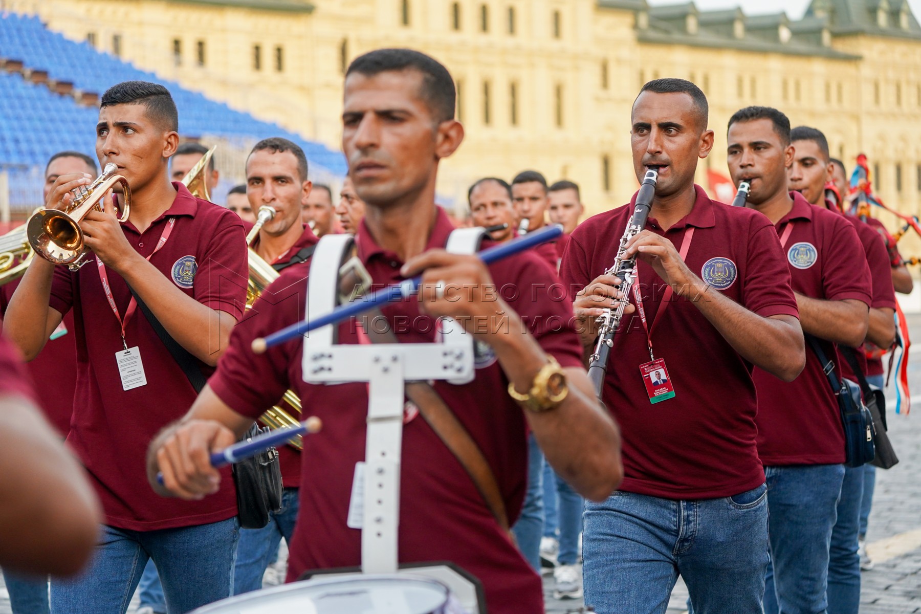 • Описание: Репетиции оркестров-участников международного военно-музыкального фестиваля «Спасская башня - 2022» на Красной площади.