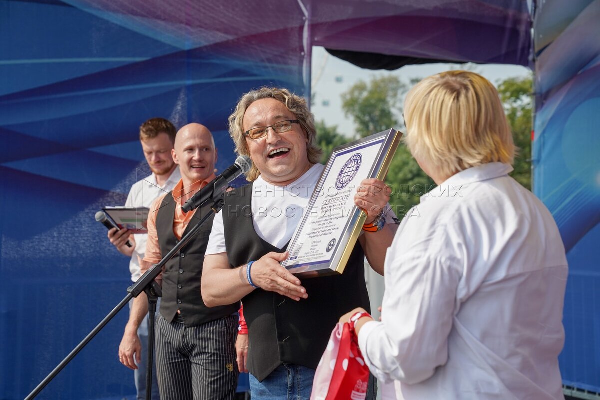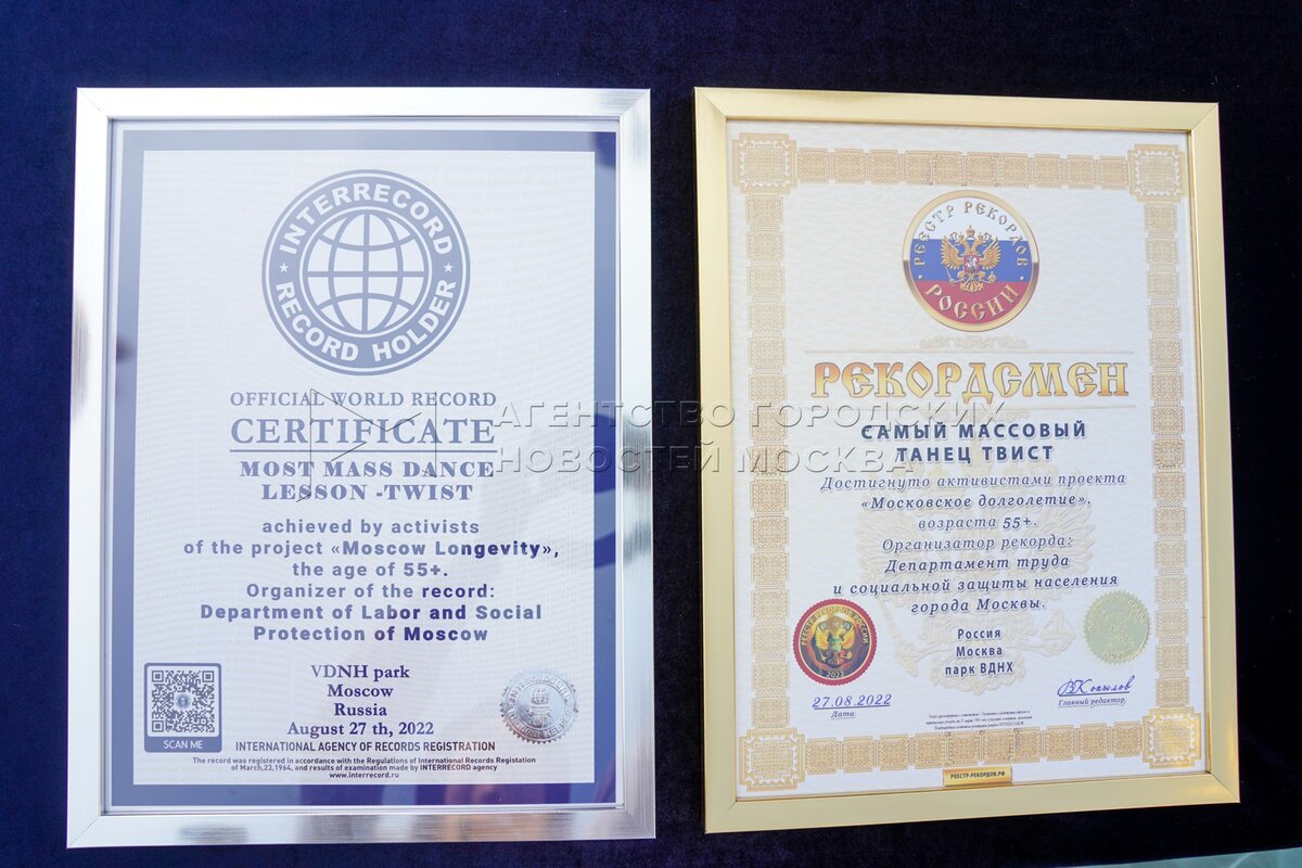 - Описание: Рекорд в танцевальном ретрофлешмобе «Самый массовый танец твист» от участников проекта «Московское долголетие» на первом Московском международном фестивале пенсионеров у павильона №1 «Центральный» на ВДНХ.