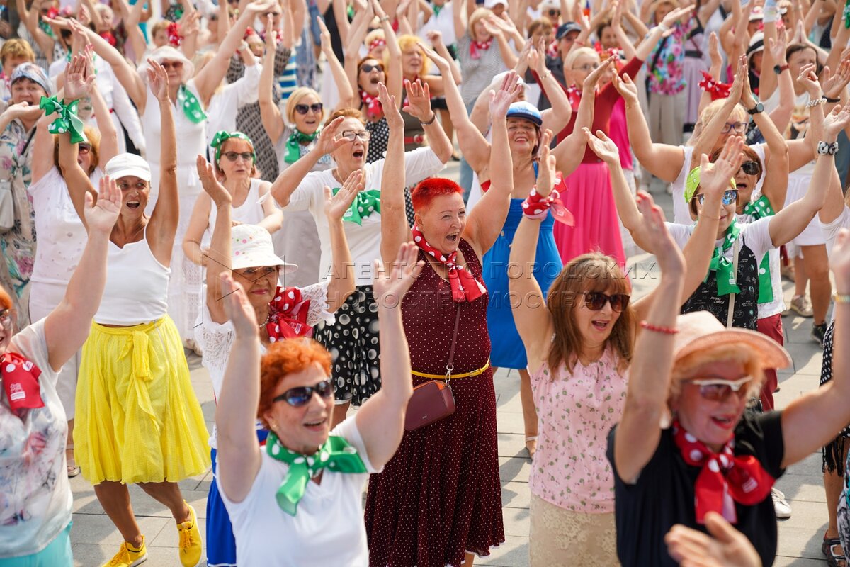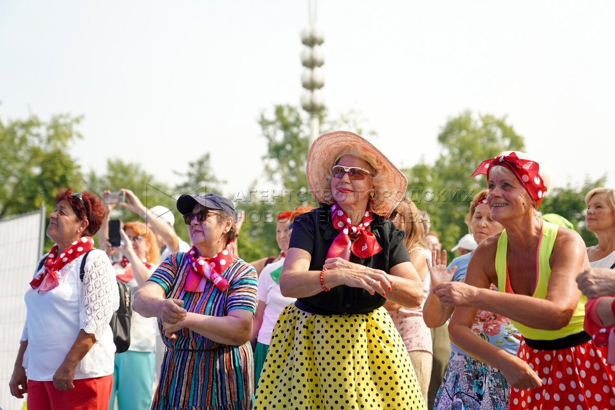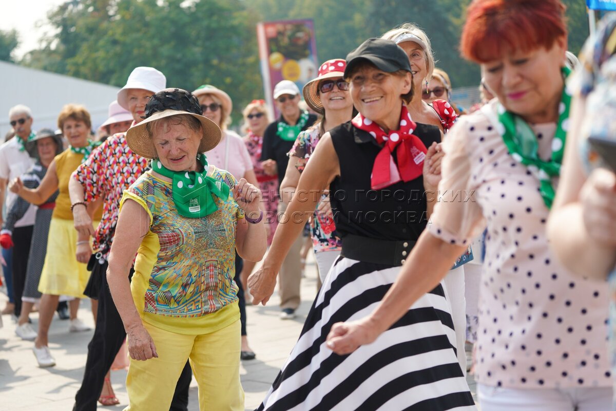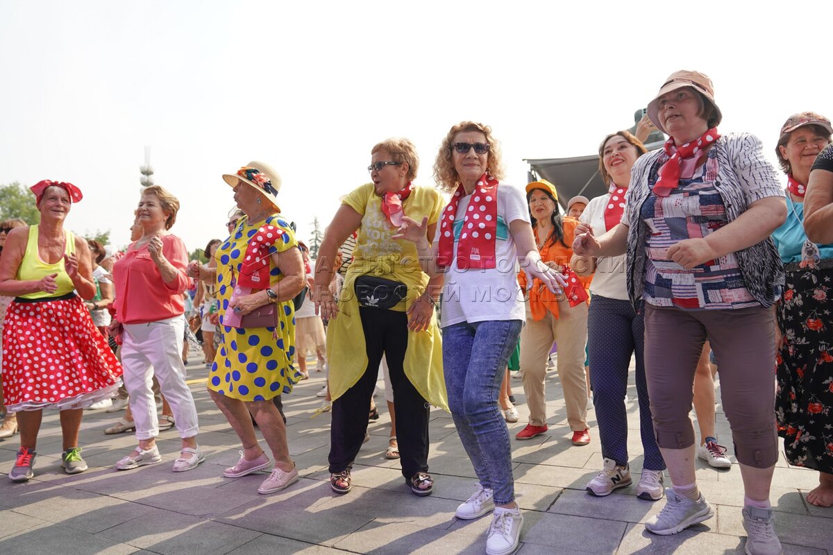 Рекорд в танцевальном ретрофлешмобе «Самый массовый танец твист» от участников проекта «Московское долголетие» на первом Московском международном фестивале пенсионеров у павильона №1 «Центральный» на ВДНХ.