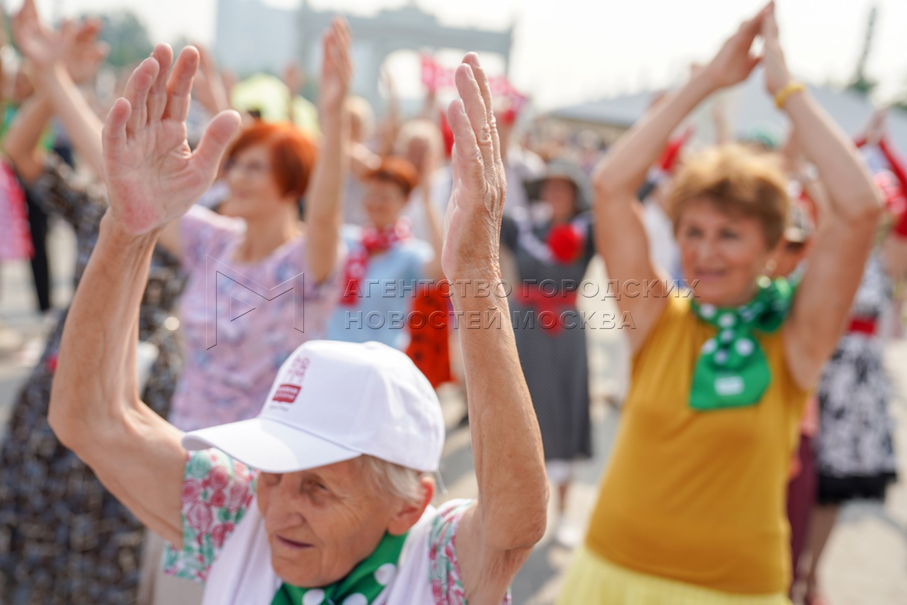 Рекорд в танцевальном ретрофлешмобе «Самый массовый танец твист» от участников проекта «Московское долголетие» на первом Московском международном фестивале пенсионеров у павильона №1 «Центральный» на ВДНХ.