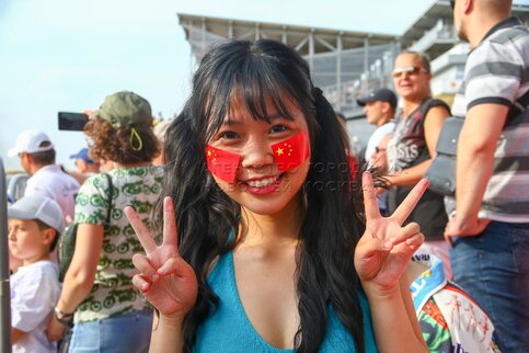 Болельщики китайской команды участников танкового биатлона на финальной эстафете ...