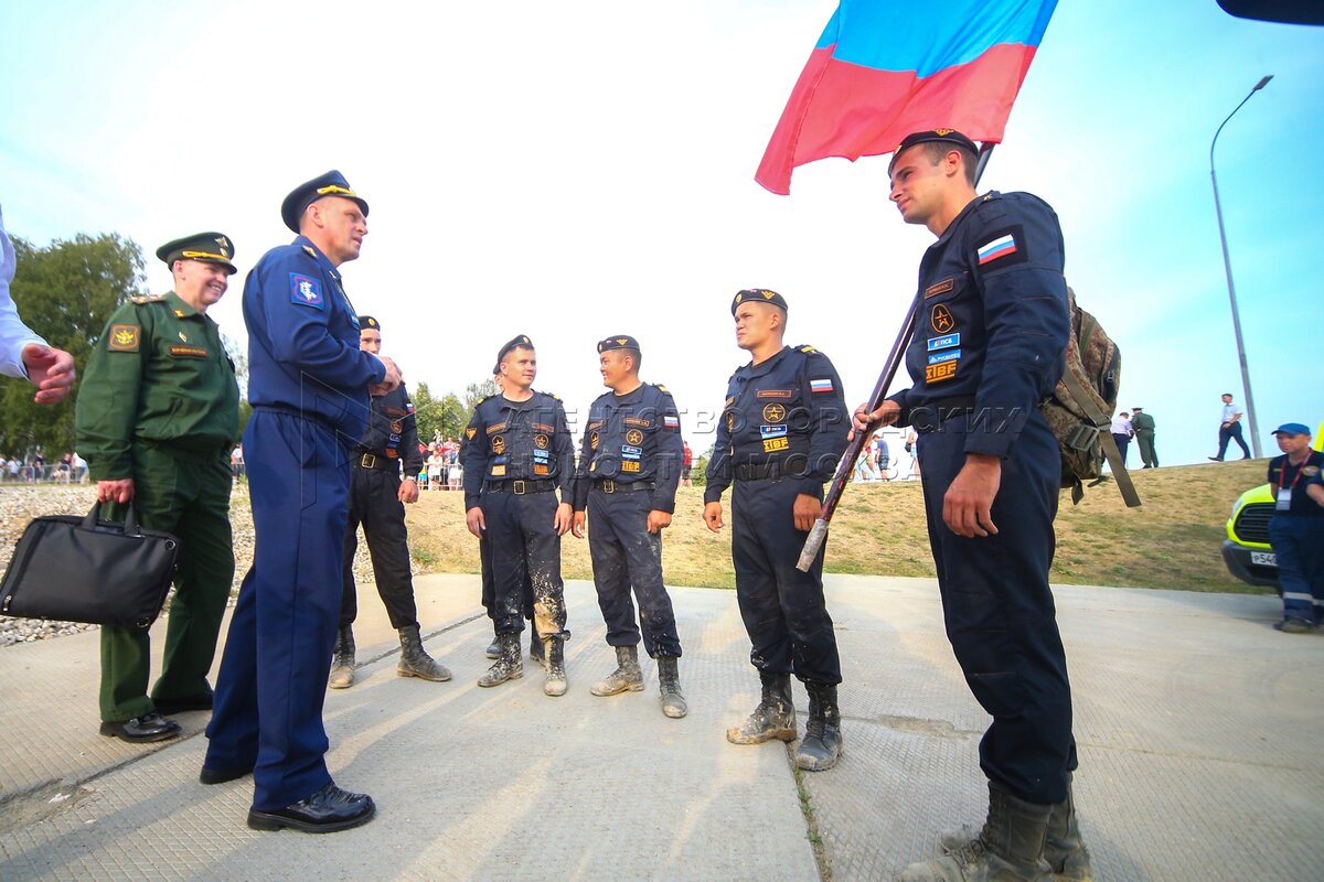Болельщики российской команды участников танкового биатлона на финальной эстафете...