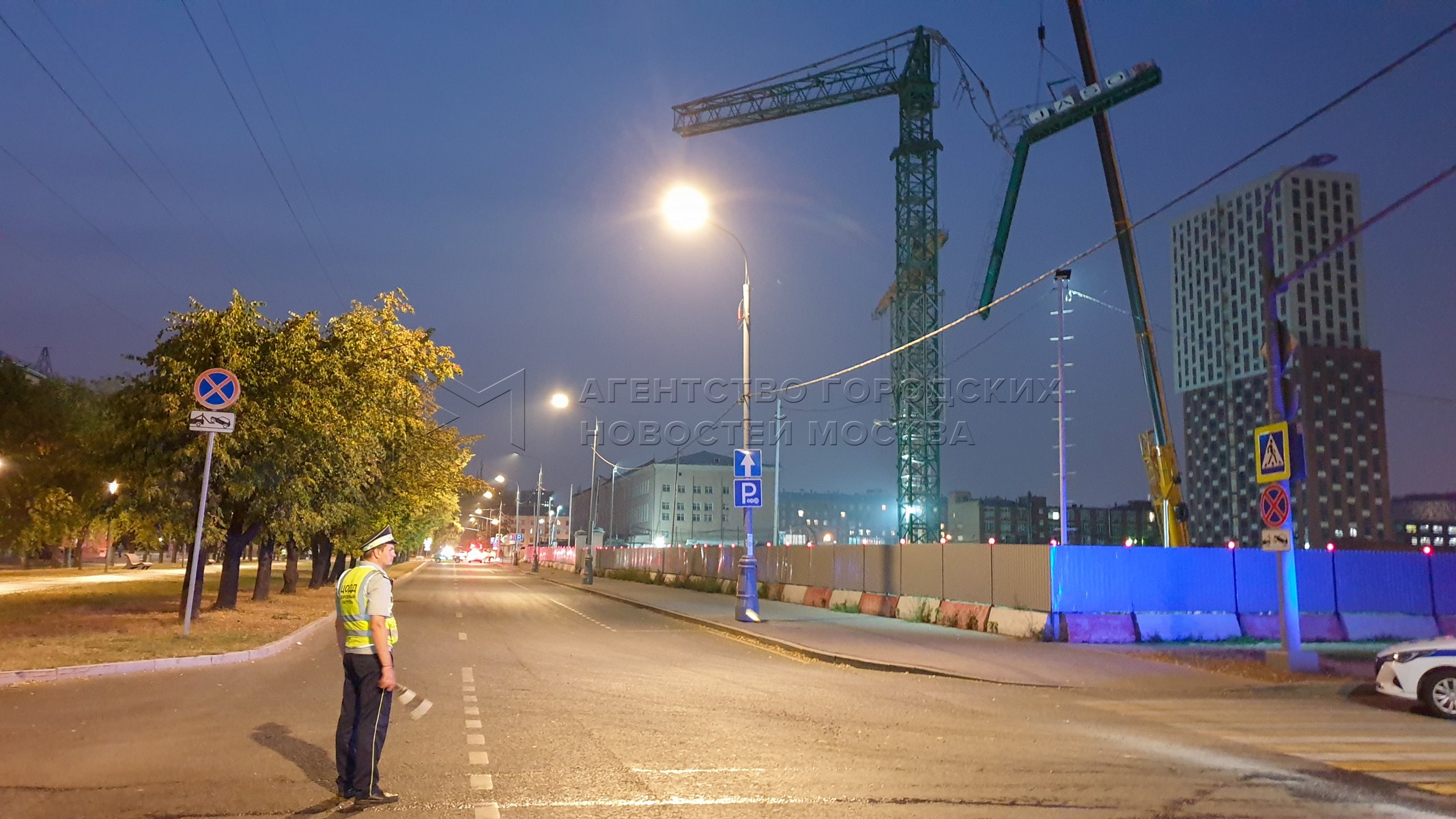 Последствия падения стрелы башенного крана на стройплощадке по адресу: ул. Рустав...