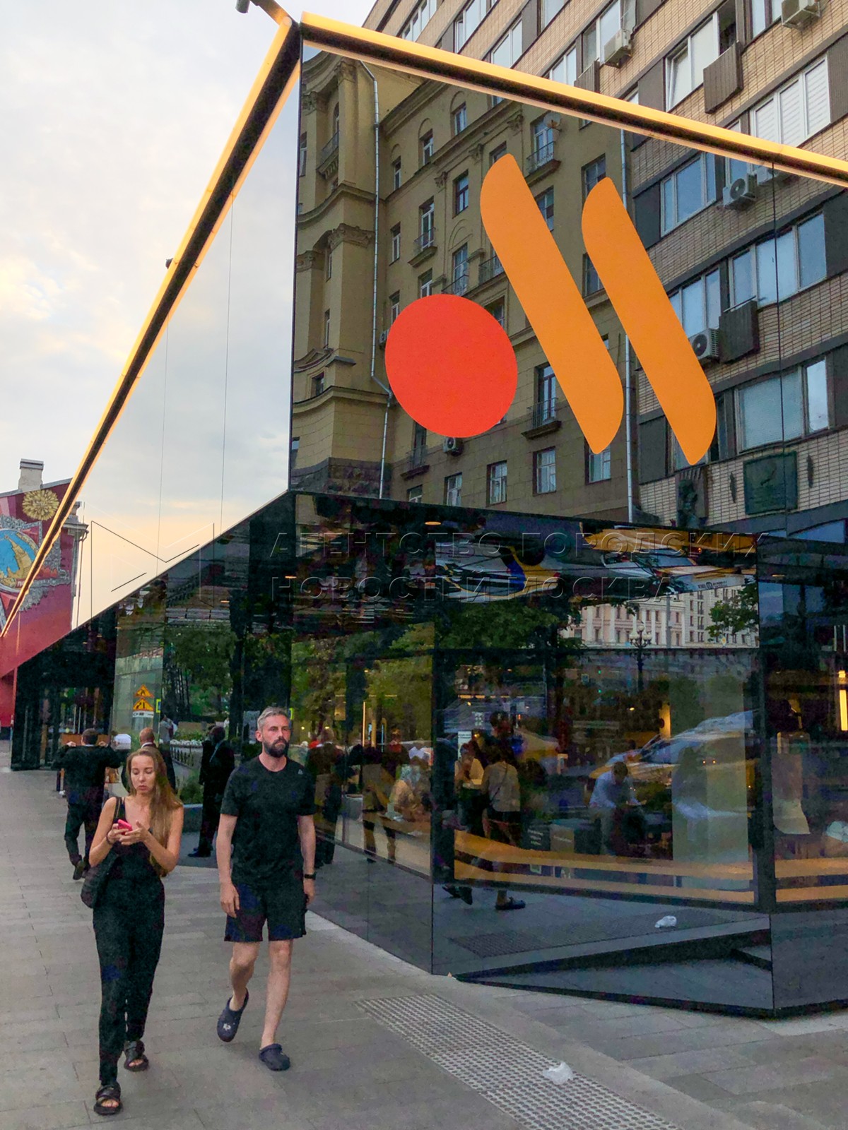 Логотип «Вкусно - и точка» на флагманском ресторане быстрого питания на Пушкинской площади