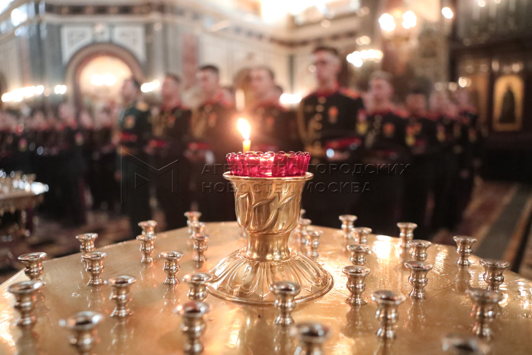 Традиционный торжественный молебен в храме Христа Спасителя после церемонии посвящения в суворовцы воспитанников Московского военно-музыкально училища имени генерал-лейтенанта Халилова у храма Христа Спасителя.