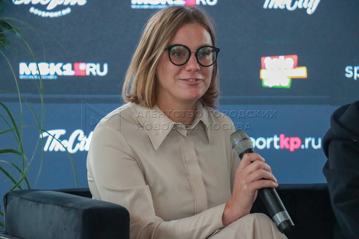 Вице-президент Федерации скейтбординга России, Директор II международного форума-фестиваля новых олимпийских видов спорта стран СНГ Ирина Неуймина во время пресс-конференции, посвященной фестивалю экстремальных видов спорта Grand Skate Tour на ВДНХ.