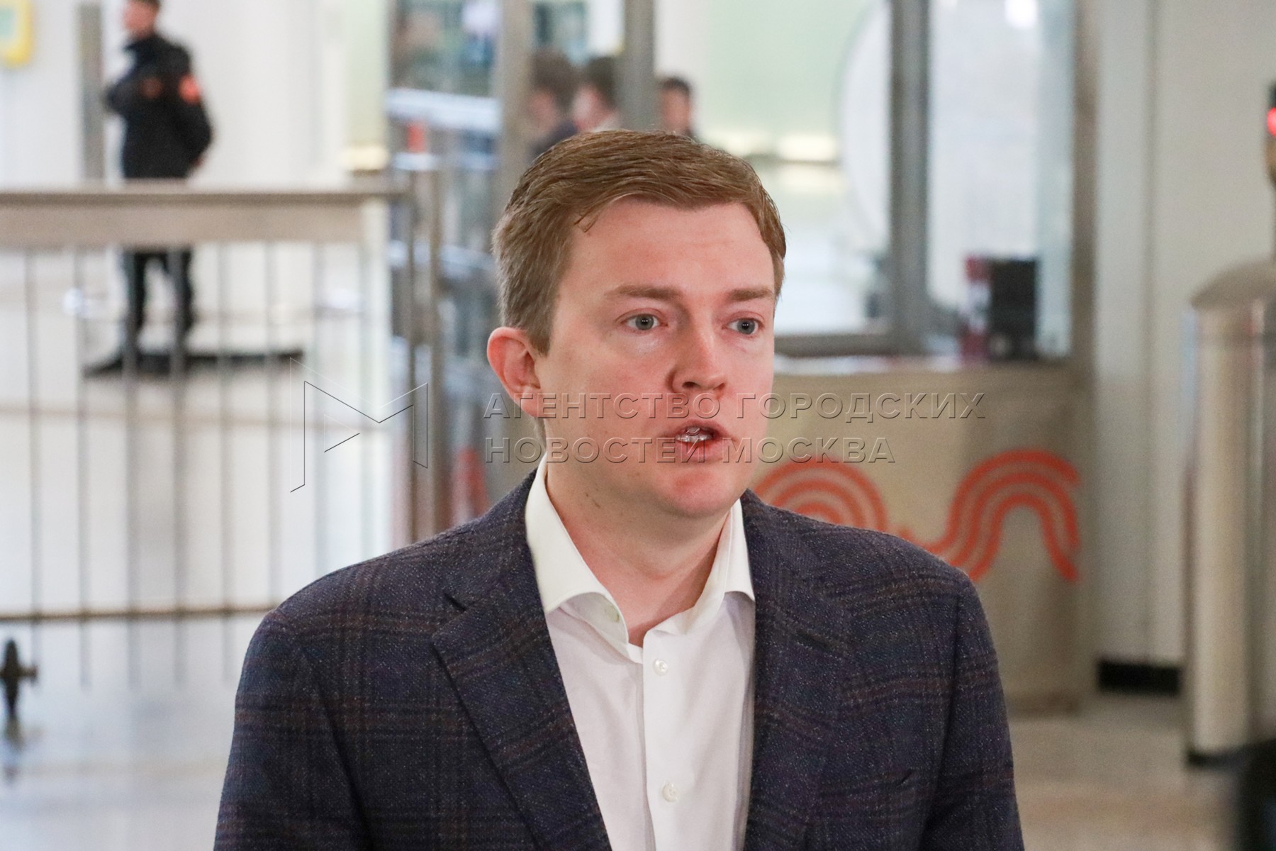 - Описание: Первый заместитель руководителя Департамента транспорта и развития дорожно-транспортной инфраструктуры города Москвы – руководитель контрактной службы Роман Латыпов во время пресс-подхода, посвященного итогам работы Московского центрального кольца (МЦК) за шесть лет и запуску системы Face Pay на всех станциях МЦК.