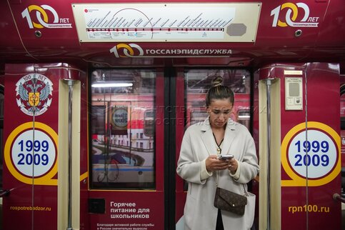 - Заголовок: Запуск в московском метро тематического поезда в честь 100-летия со дня образования санэпидслужбы России