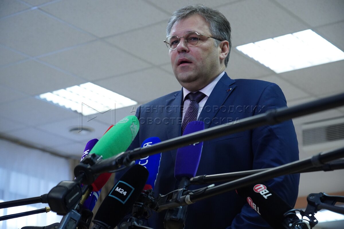 Посол Луганской Народной Республики (ЛНР) Родион Мирошник во время голосования в ...