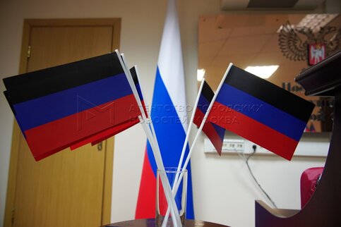 Посол Донецкой Народной Республики (ДНР) в РФ Ольга Макеева (слева) во время голо...