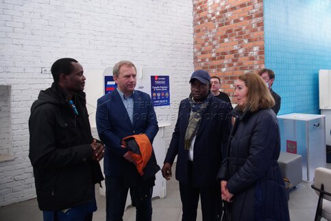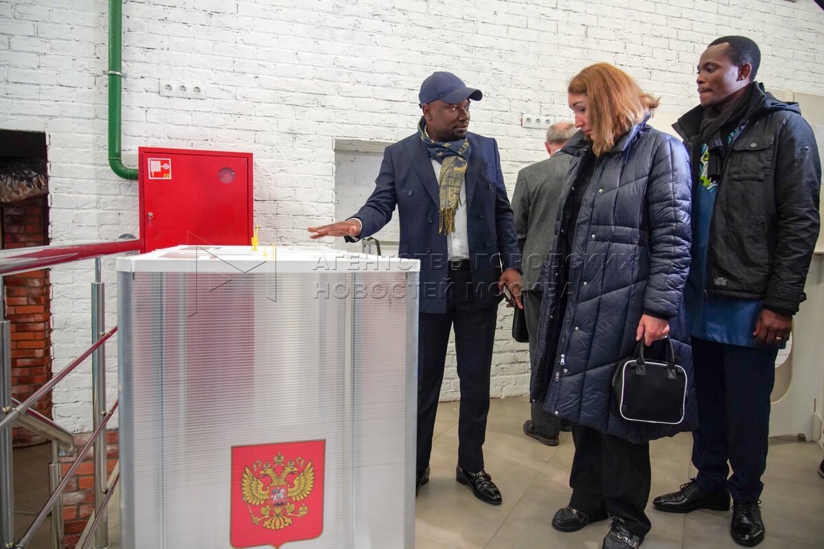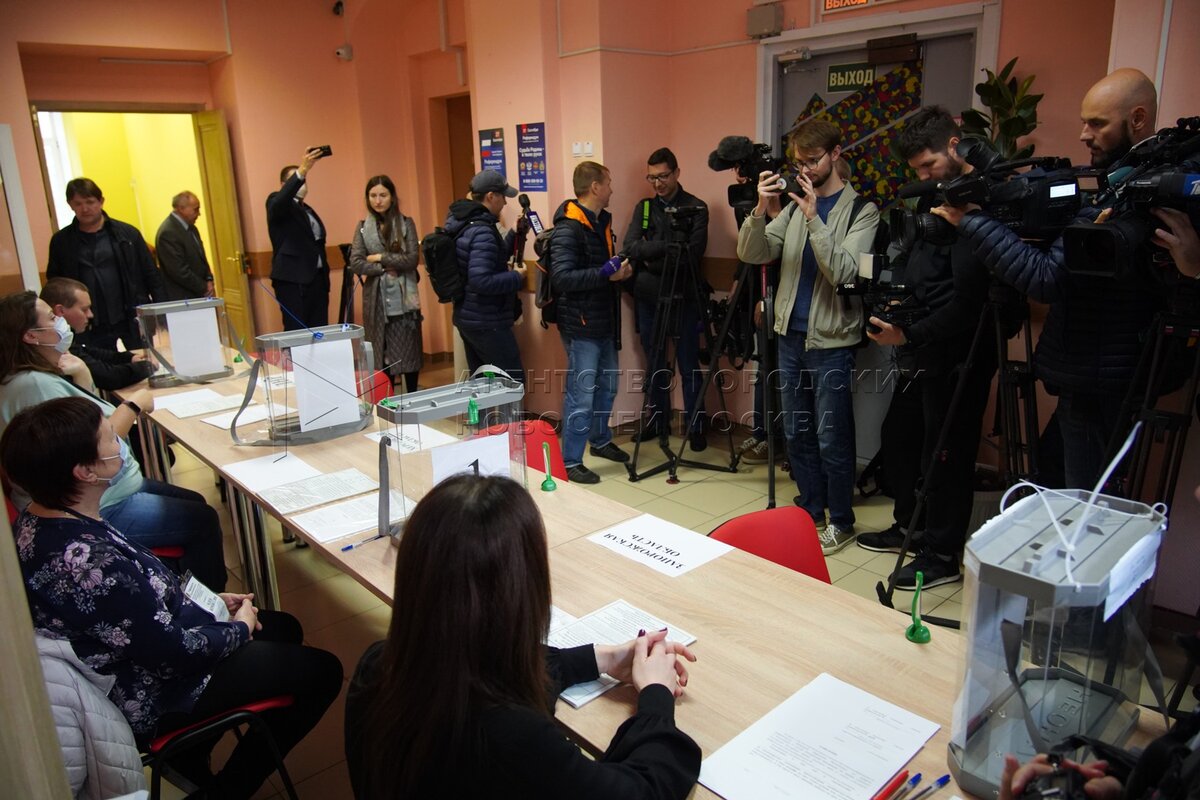 Иностранные наблюдатели во время голосования в Москве на референдумах по вопросу ...