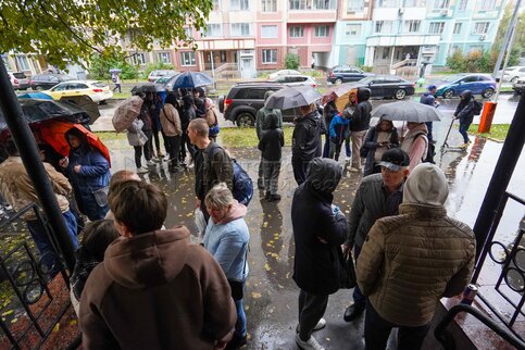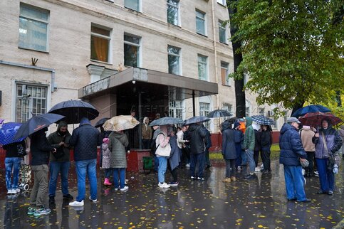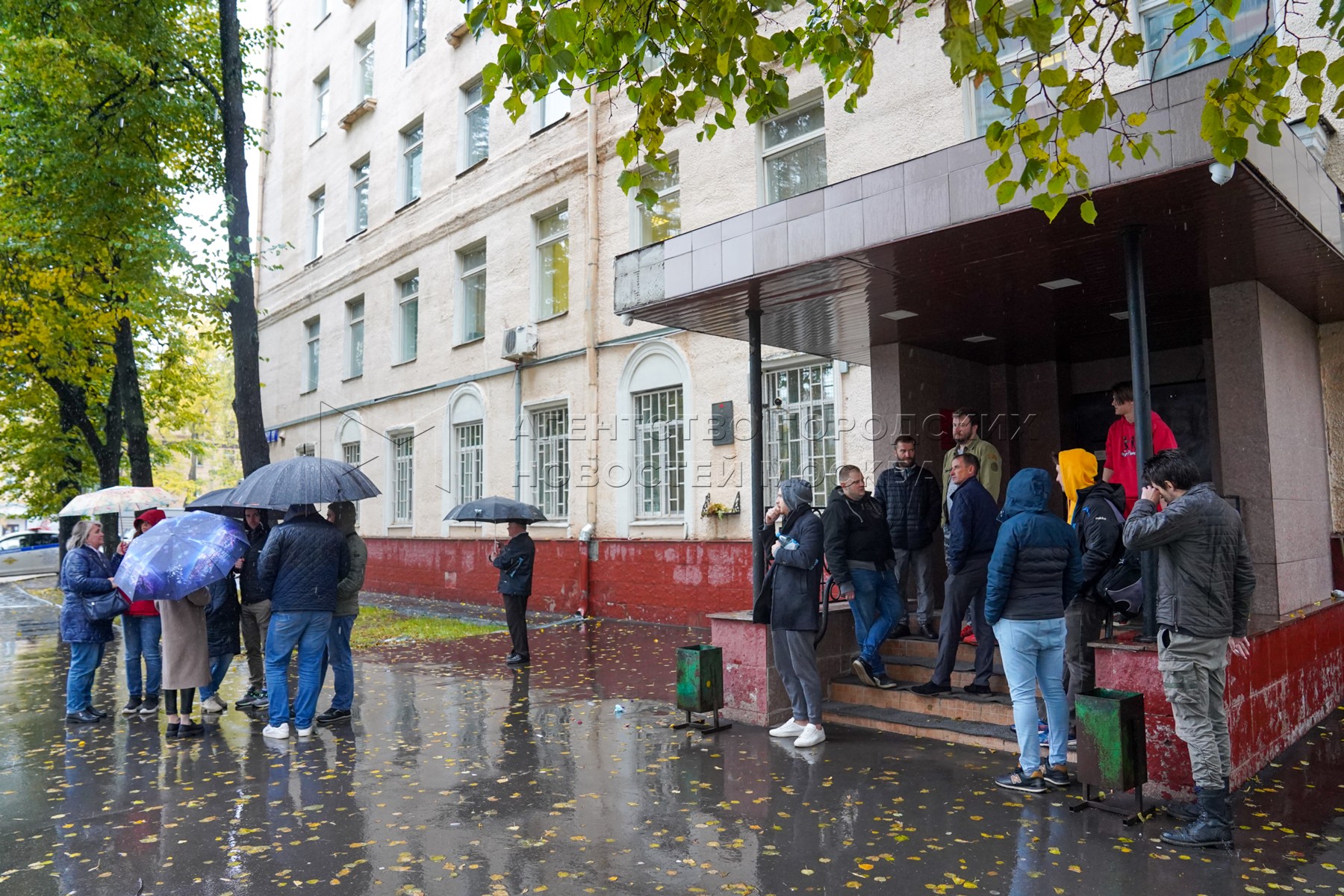 Очередь возле объединенного военного комиссариата Кунцевского района столицы на ул. Партизанская после объявленной частичной мобилизации резервистов.