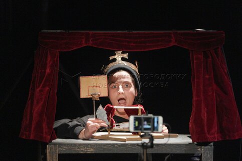 - Описание: Актер Михаил Ложкин в роли Короля-Отца в сцене из премьерного спектакля «Принц в корзине» в рамках открытия московского филиала петербургской независимой команды «Театральный проект 27» на площадке «Арт-платформа» в Новом Манеже.
