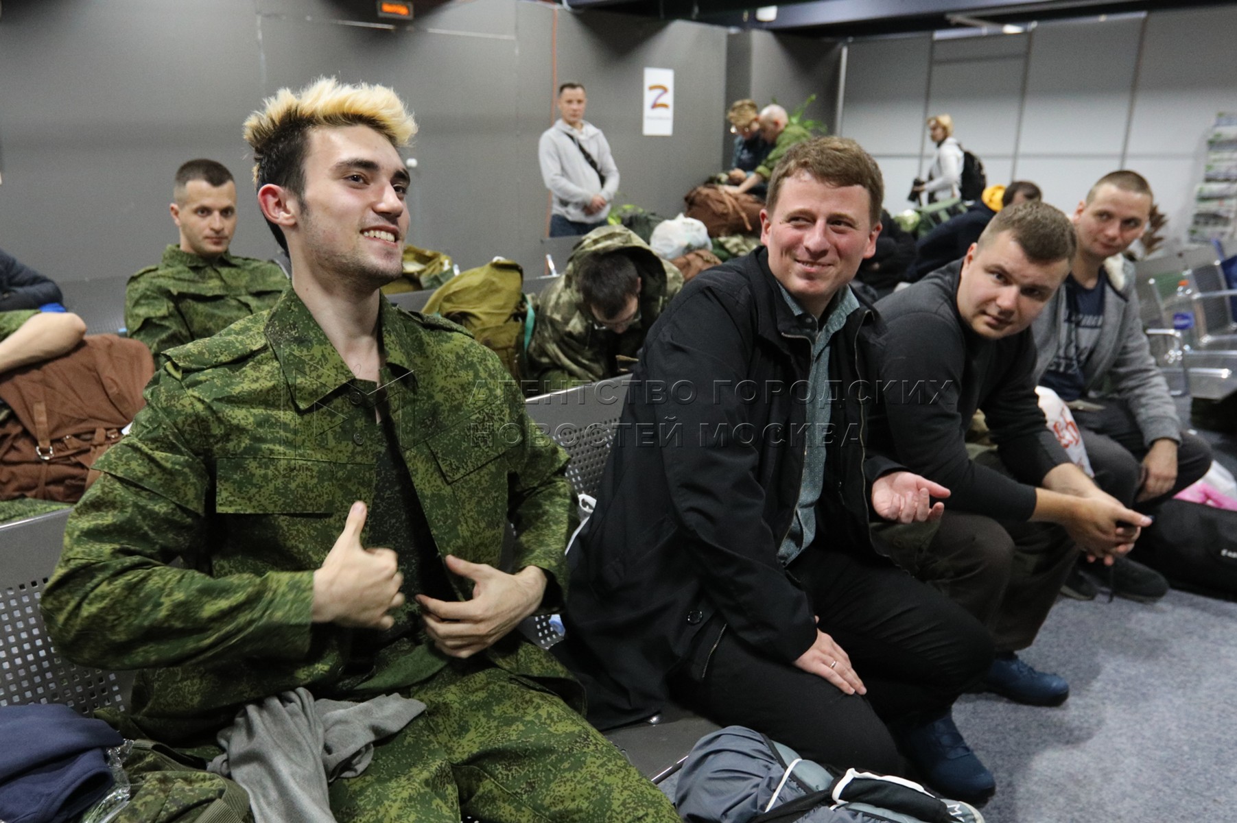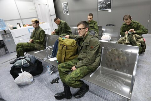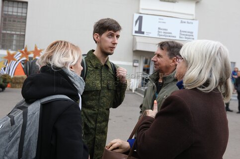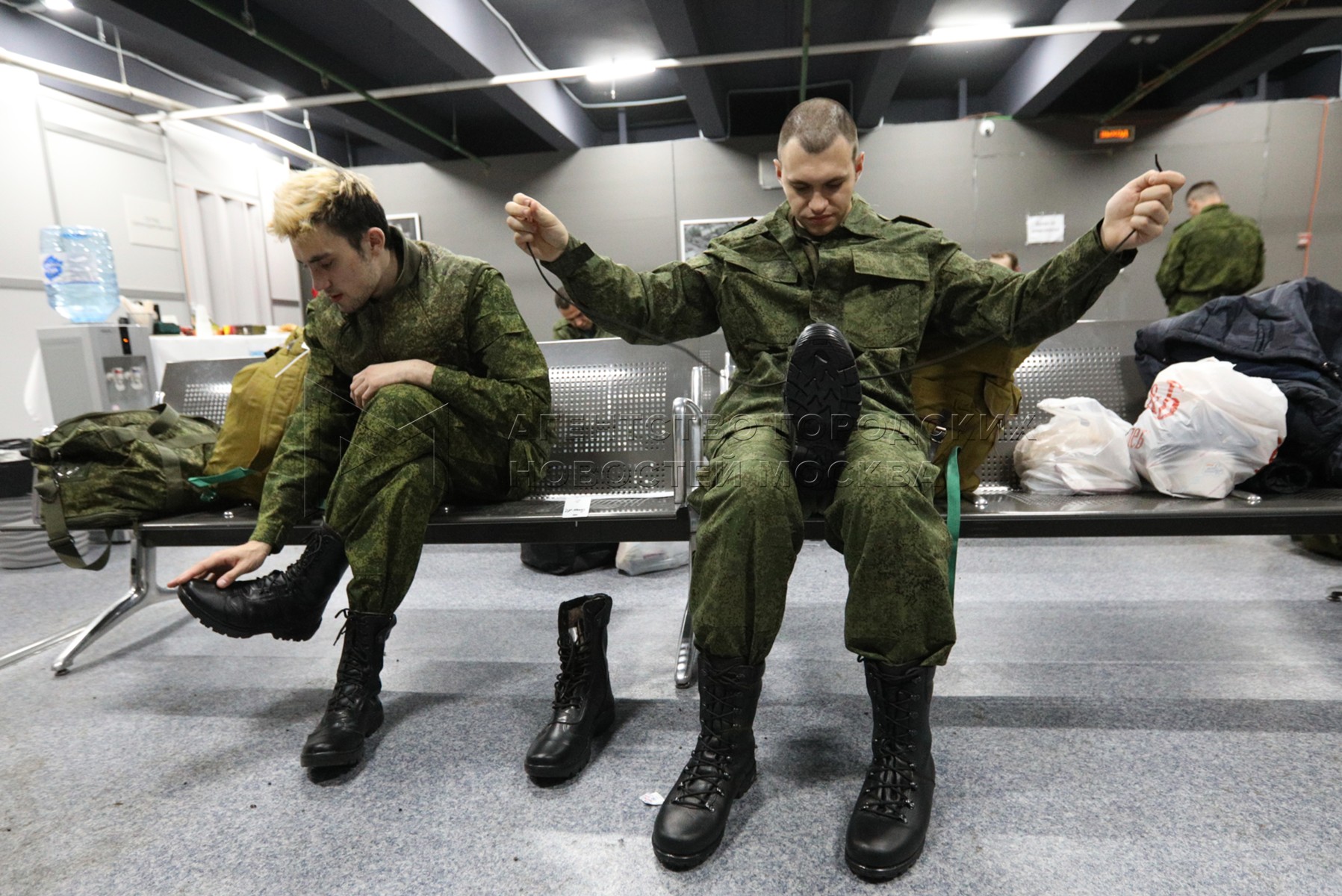 Обстановка на временном пункте мобилизации в Музее Москвы.