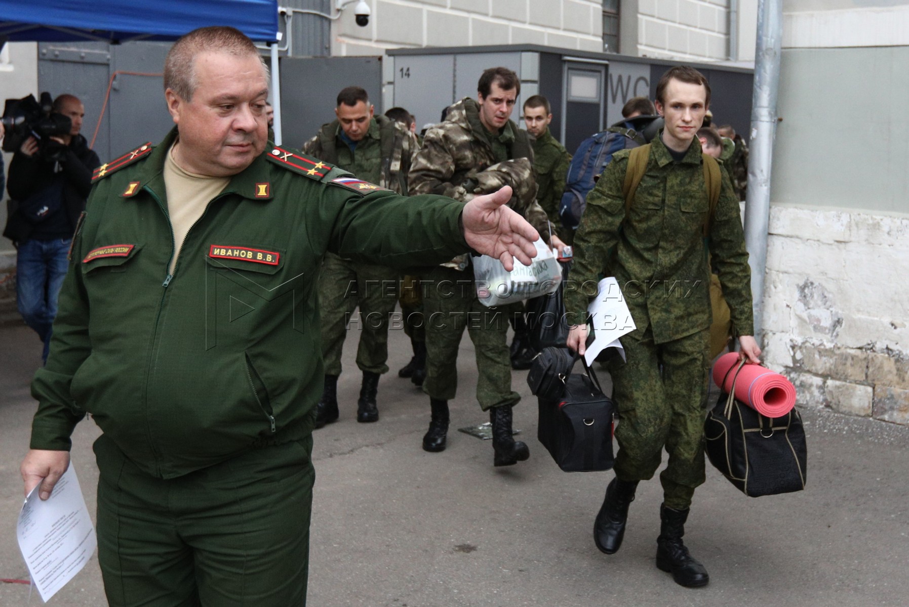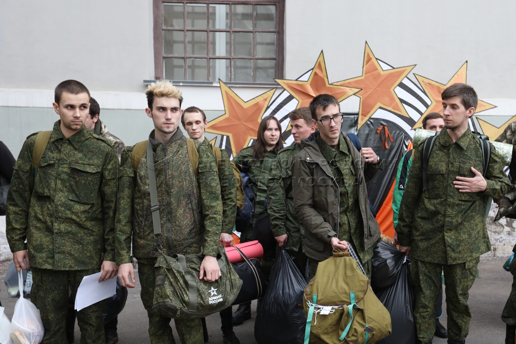 • Описание: Выдача обмундирования на временном пункте мобилизации в Музее Москвы.