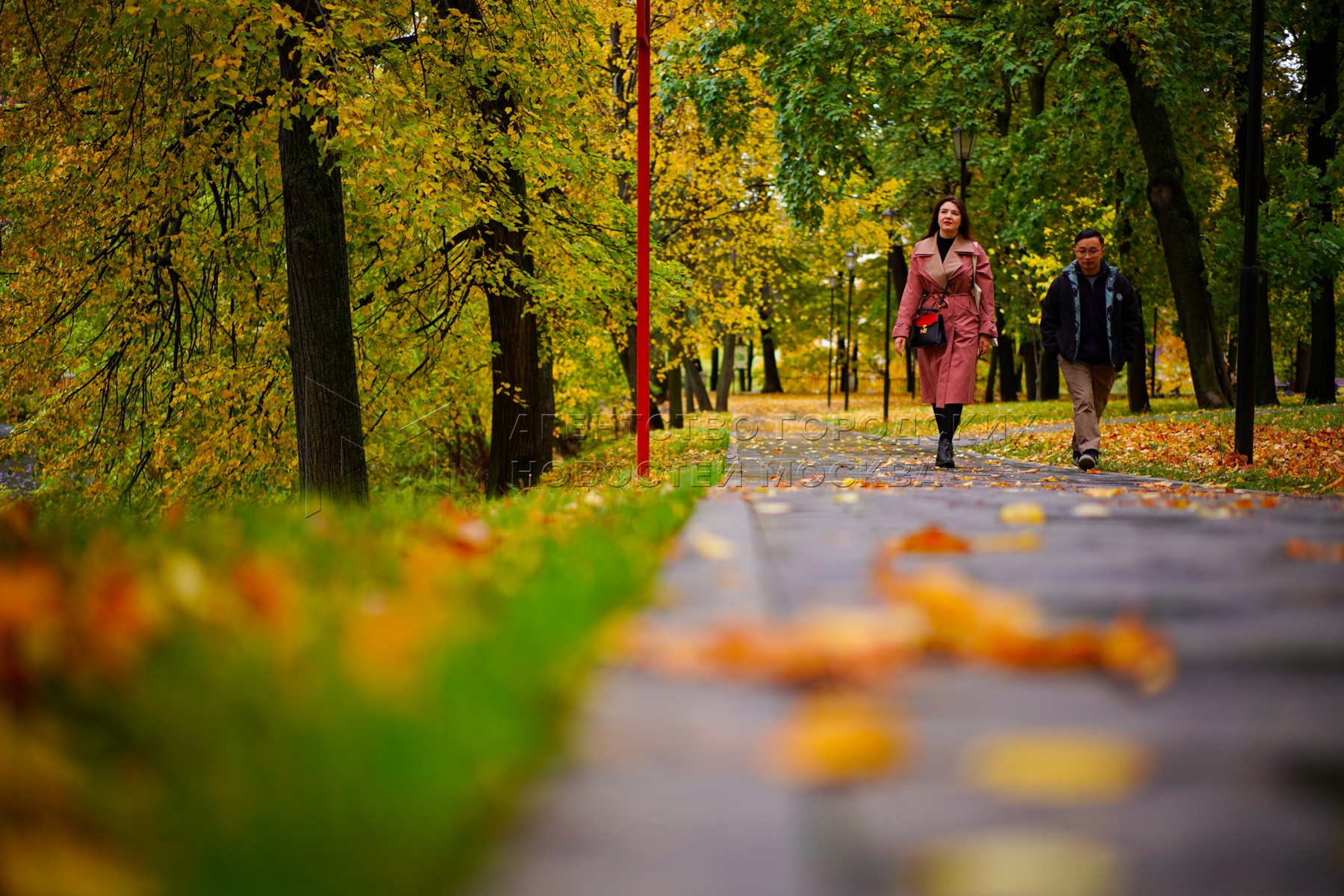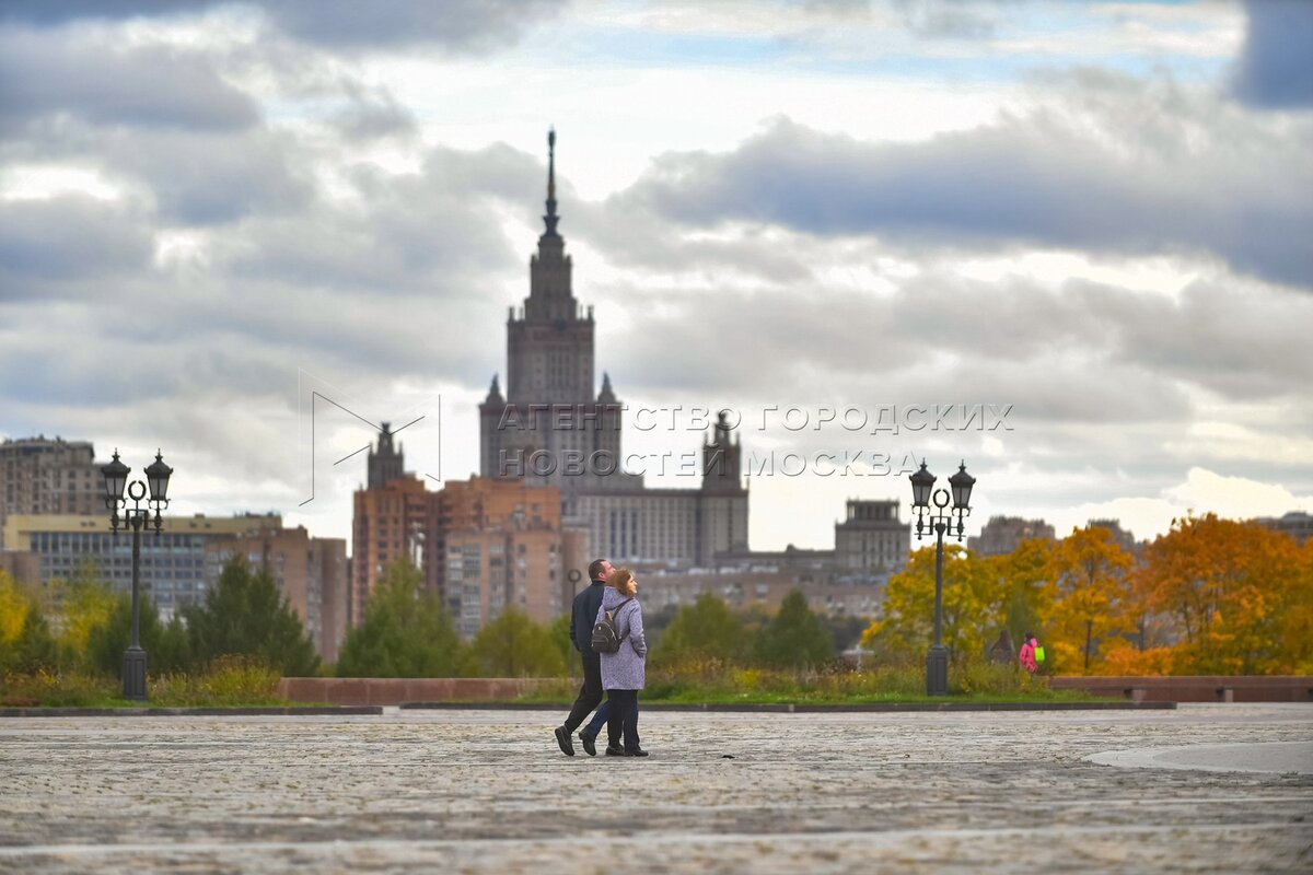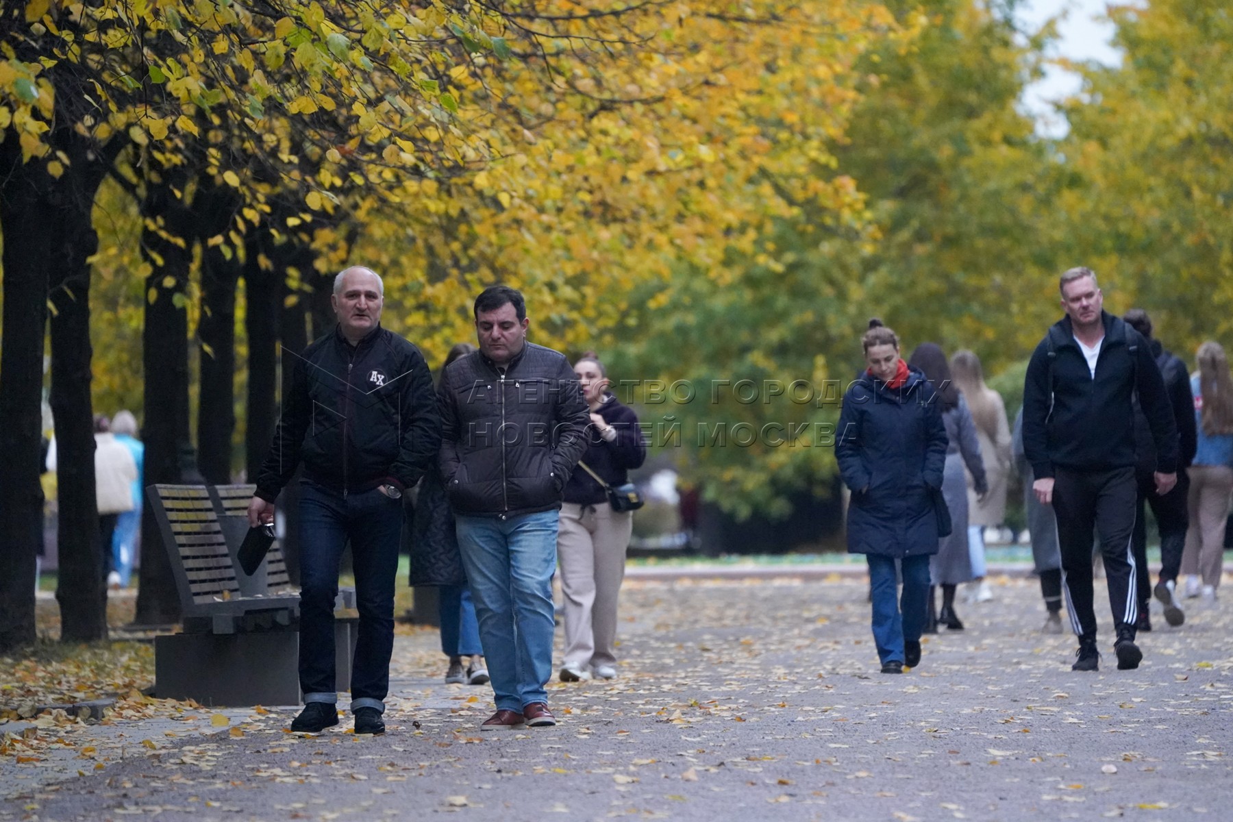 Осень в Москве. Горожане на прогулке в парке.