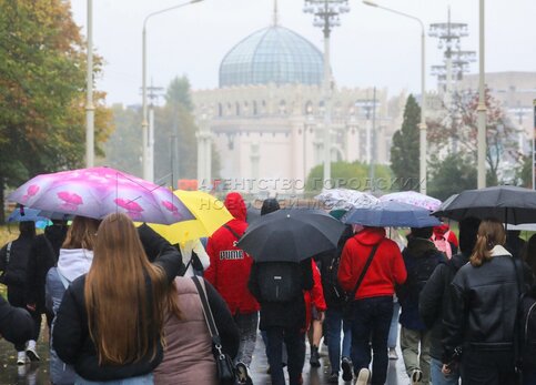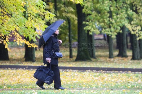 Осень в Москве. Горожане с зонтами.