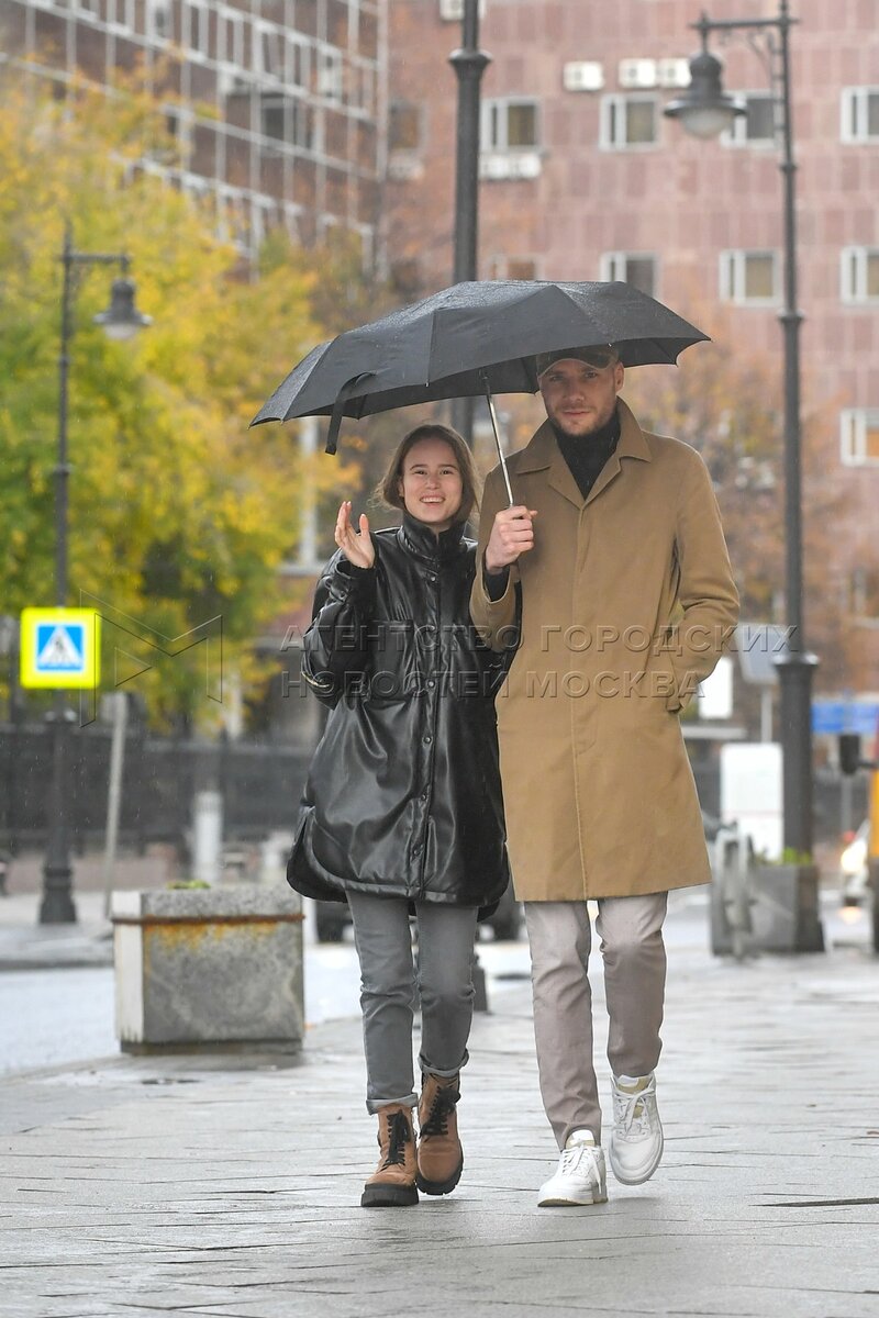 Осень в Москве. Горожане под зонтиком.
